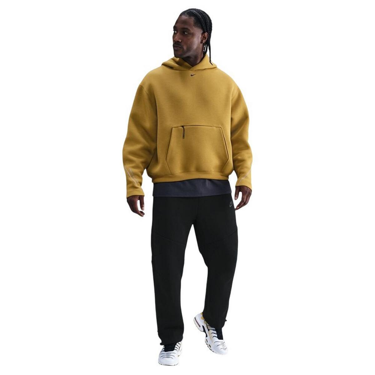 The Nike Tech Men's Fleece Open-Hem Pants offer a modern take on everyday comfort. Crafted from a lightweight fleece blend of recycled polyester and organic cotton, these pants provide warmth without added bulk. Designed with a relaxed fit through the seat and thighs, they feature an elastic waistband with an external drawcord for a customizable fit. Zippered hand pockets add functionality, while the open hem allows the pants to rest comfortably over shoes. Whether you're lounging at home or heading out, the Nike Tech Men's Fleece Open-Hem Pants combine style and comfort effortlessly.