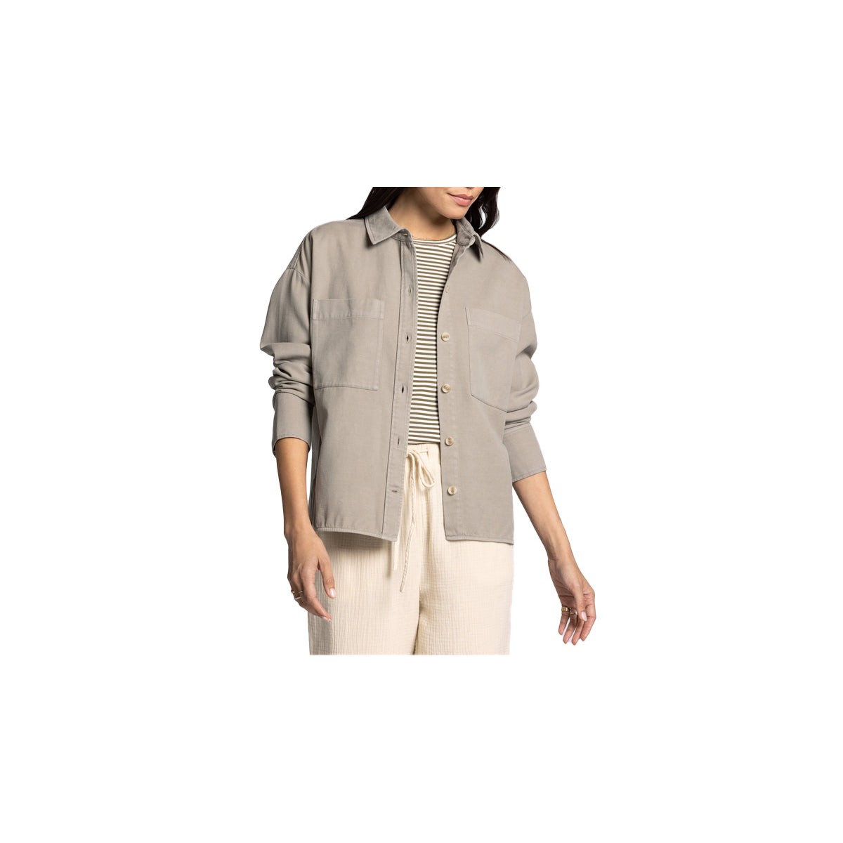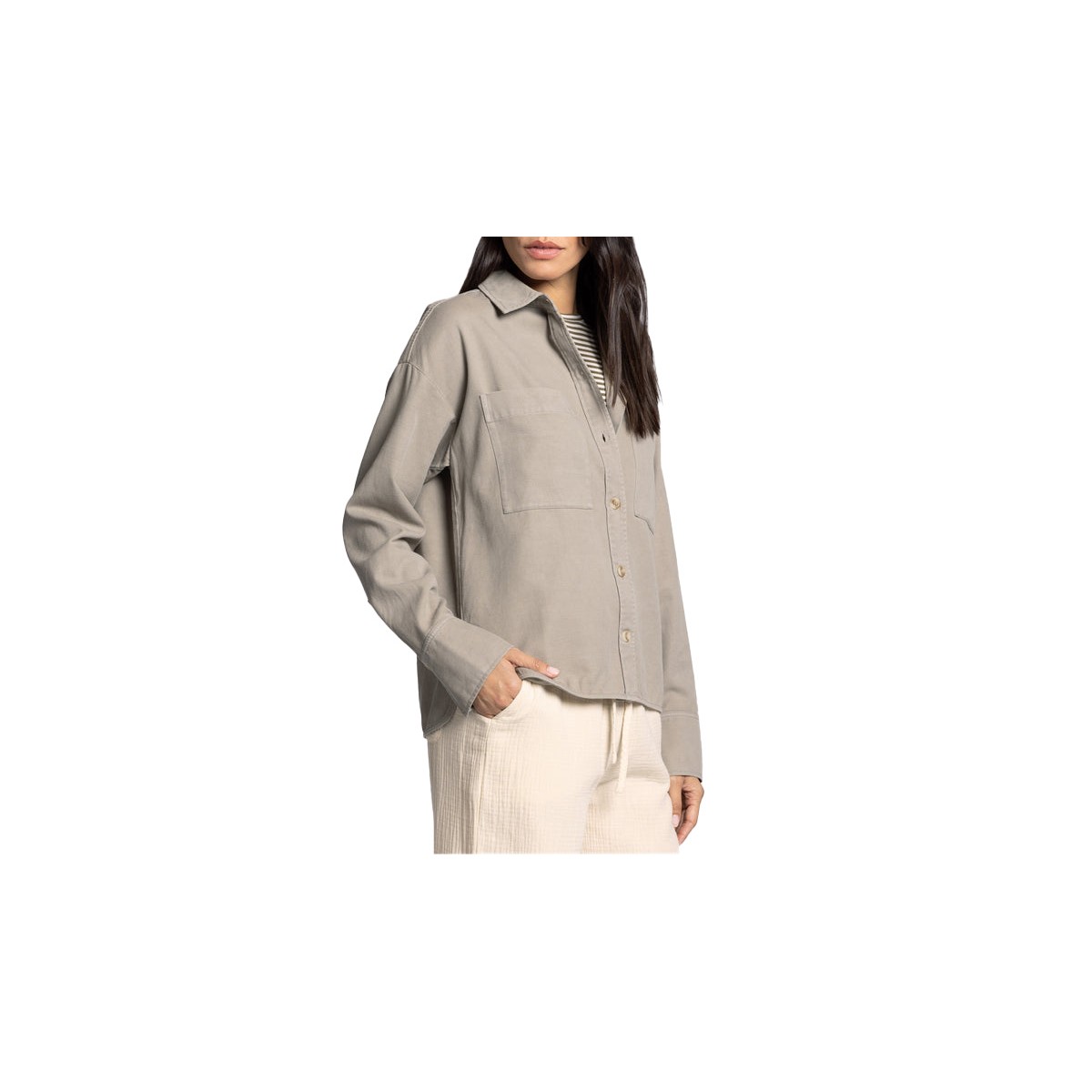 A whole new take on a classic style, this chore inspired jacket is featured in a super soft cotton blend fabrication with button-front closures and dual patch pockets for a total go-to layer.