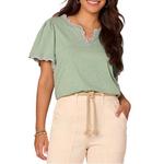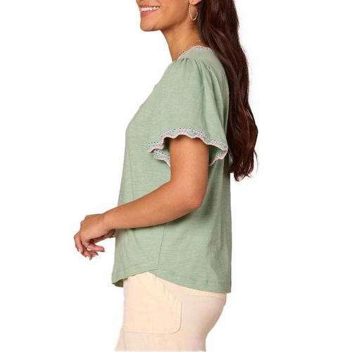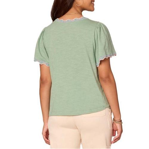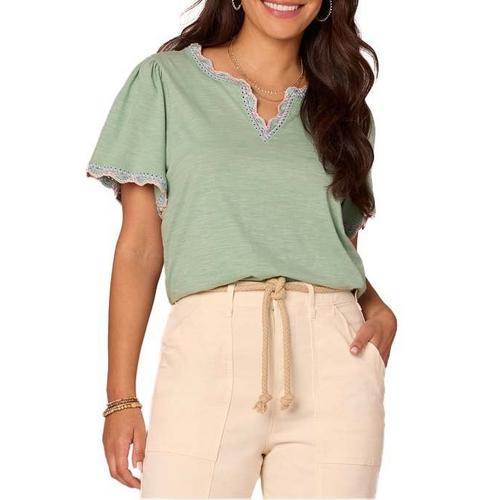 Women's Democracy Scallop Crochet Notch Neck Shirt