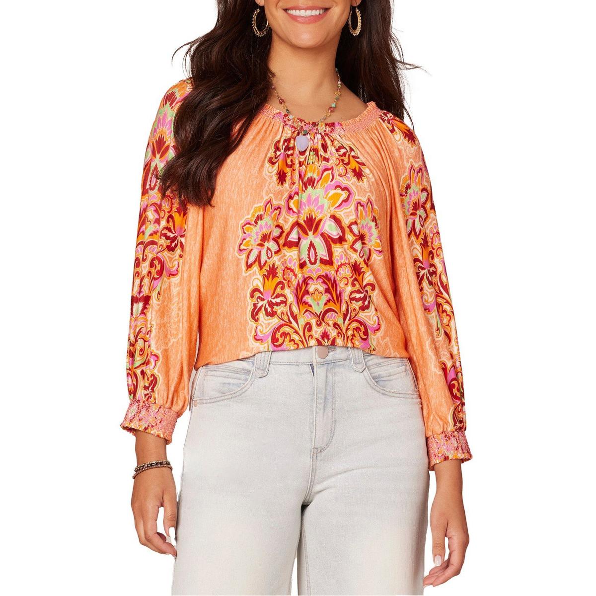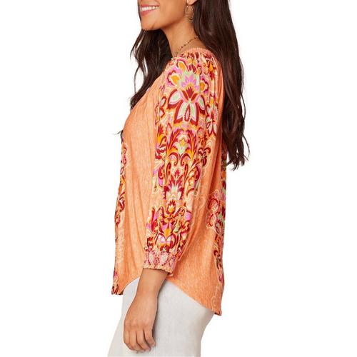 Old Price:Women's Democracy Print Knit 3/4 Sleeve Boat Neck Blouse