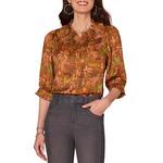 Old Price:Women's Democracy Ruffle Collar Printed Woven 3/4 Sleeve Button Up Shirt
