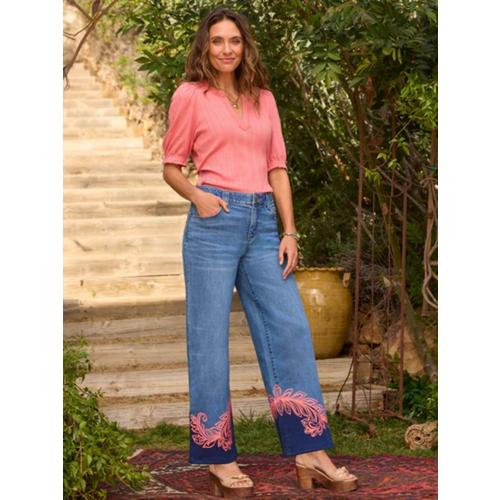 The "Ab"solution® Wide Leg is fitted through the hips with a relaxed, wide opening through the legs. Designed with a multi color screen print hem and our signature fit technology to smooth, support, and enhance your shape—giving you everything from a flatter tummy to a perkier rear view.
