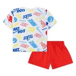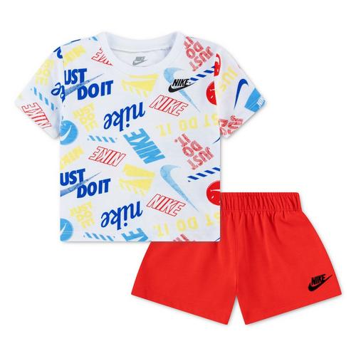 Effortlessly dress your kiddo to get in the zone of play and movement with this 2-piece jersey knit set from Nike. The cotton tee features an allover logo graphic print and has a tagless crewneck for fuss-free wear. The shorts are a cotton/poly blend and has a stretch waistband for a comfy fit.