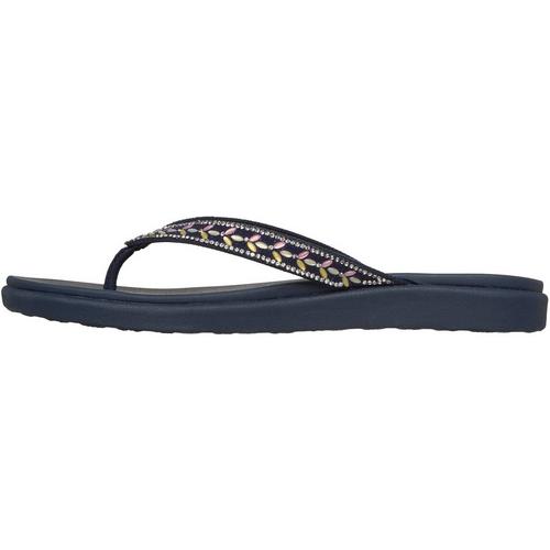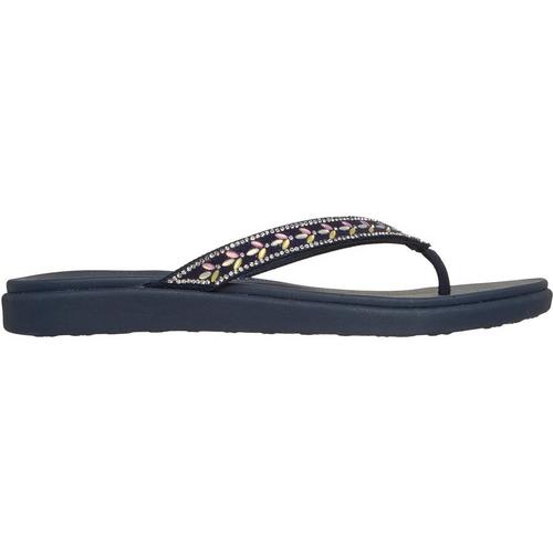 Beat the heat and bring the style with Skechers Meditation Luxe - Everyday Glow. This vegan flip-flop sandal features a rhinestone-embellished knit upper and a cushioned Luxe Foam® footbed with podiatrist-certified Arch Comfort® support.