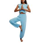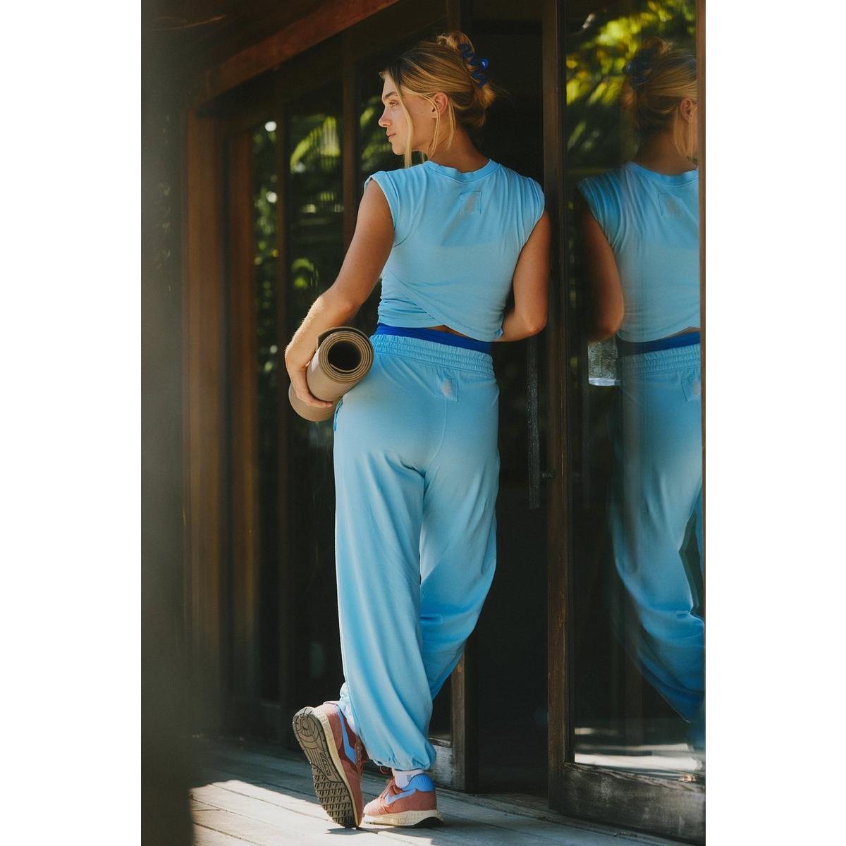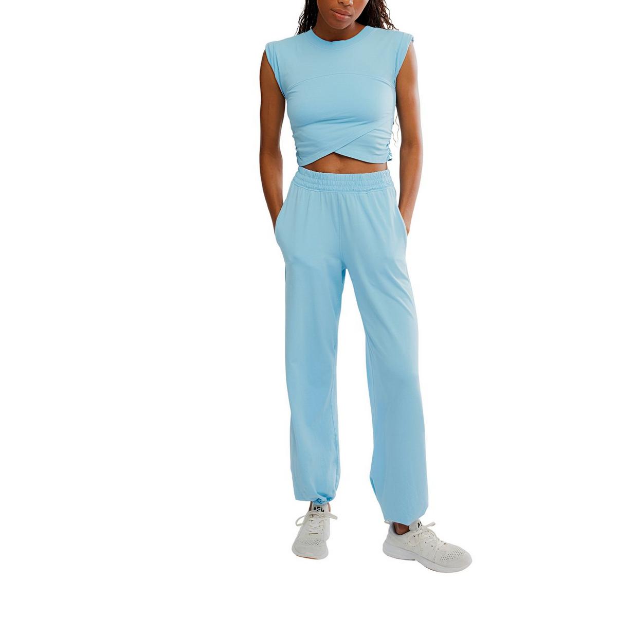 Discover effortless comfort and versatile style with the Women's FP Movement Hot Shot Crossover Set, perfect for throwing on before or after your workouts. This super soft set offers a perfectly lived-in look, designed for all-day ease. The relaxed-fit includes a cropped muscle tee with a unique crossover detail and high-rise, ankle-length pants with a wide leg. Complete with an elasticated waistband and cuffs, plus convenient side seam pockets, this set transitions seamlessly with your active lifestyle.