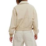 Features: Cotton twill fabrication, collared neckline, zip-front closure, slit pockets, shirred elasticated hem and cuffs, drop-shoulder balloon sleeves