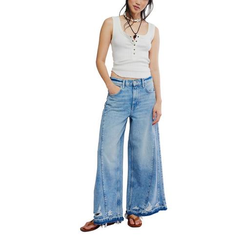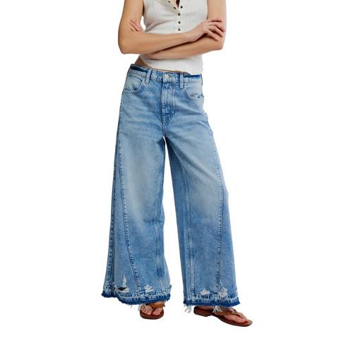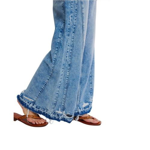 Super-wide legs and a destroyed hem make these mid-rise jeans from We The Free a standout piece.