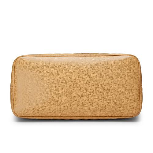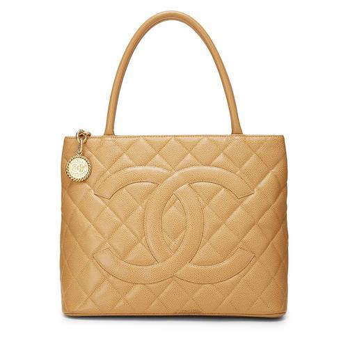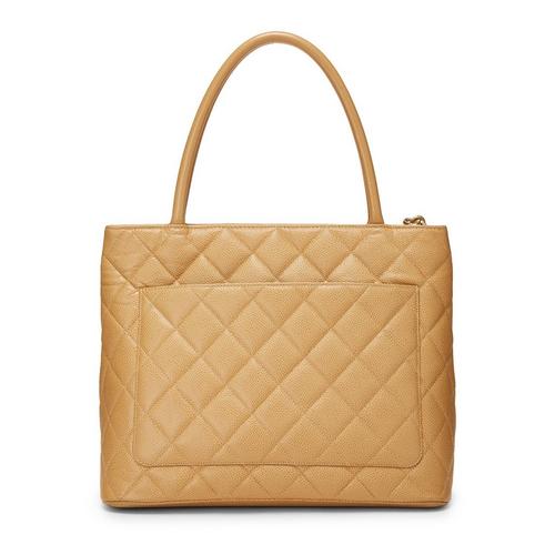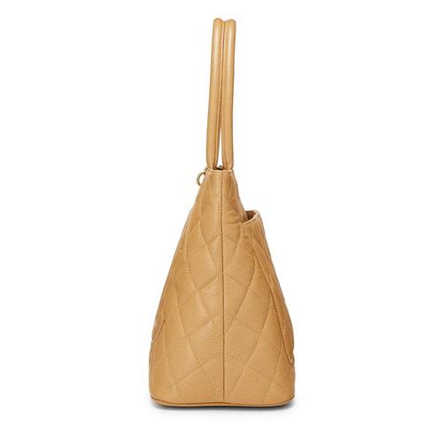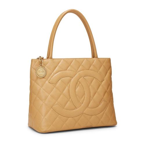 What Goes Around Comes Around Chanel Beige Quilted Caviar Medallion Tote Shoulder Bag