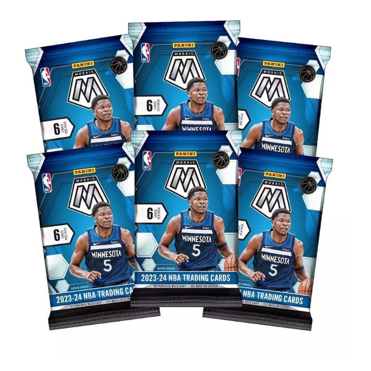 Panini presents the 2023-24 NBA Mosaic Basketball Trading Card Blaster Box. This box contains 6 packs with 6 cards per pack. Find 4 Prizms Per Box on Average. Look for the Ultra-Rare Mosaic Genesis Prizms! Look for the Ultra-Rare Inserts including Stained Glass and the New Micro Mosaic!