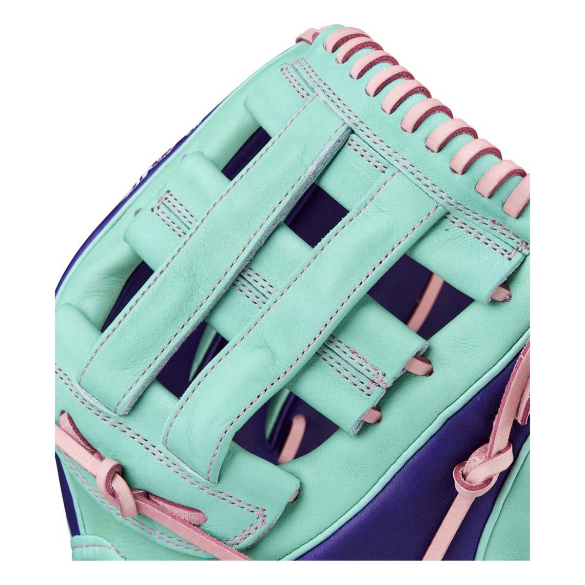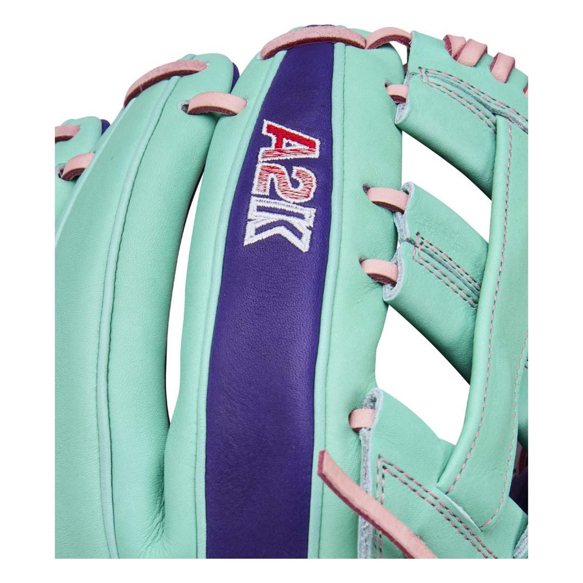 Turn barreled up balls into big outs on the infield with the Winter 2025 A2K® DW5, a 12” glove optimized to steal base hits up the middle and snare balls down the third base line. Flawless Purple and Seafoam Pro Stock® Select leather offers Wilson’s most premium feel and performance, and a sturdy Dual Post Web funnels catches into the glove’s deep pocket. Expert Craftsmen in Japan form the A2K DW5 with Double Palm Construction™ - an extra layer of leather between the palm shell and liner – that forms to the players hand during the break-in process and helps the glove keep its shape throughout its lifetime.