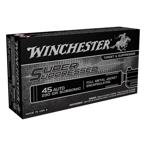 Winchester Super Suppressed FMJ 45 ACP Handgun Ammunition 50 Round Box