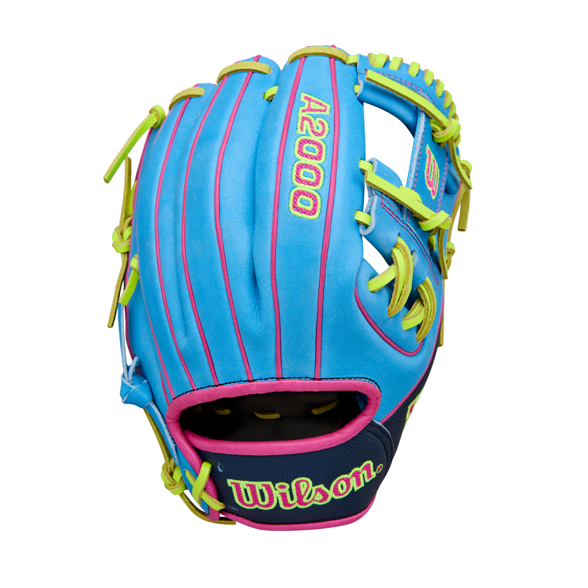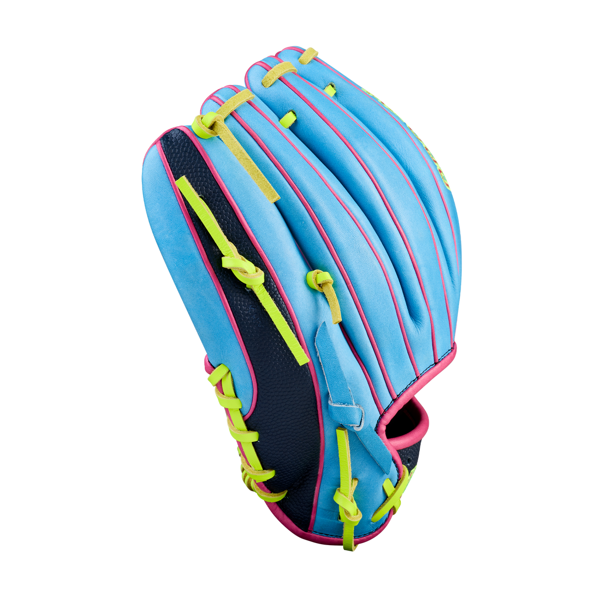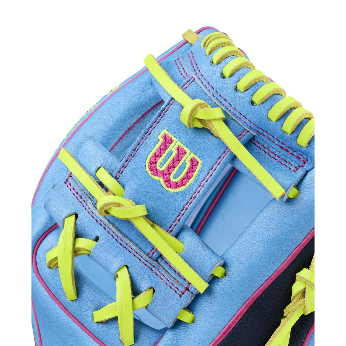 Turn double plays up the middle or handle hot shots down the third base line with the Spring 2026 A2000® 1786, Wilson’s iconic 11.5” infield baseball glove pattern with a shallow pocket design and H-Web Construction to turn quick transfers. The glove’s Sky Blue Pro Stock® leather palm offers lasting comfort and performance, while Navy Blue SuperSkin™ along the thumb, wrist and pinky panels shed weight and repel moisture. Optic Yellow & Pink accents, along with new Woven Bold Logos, offer extra flash to match your performance.