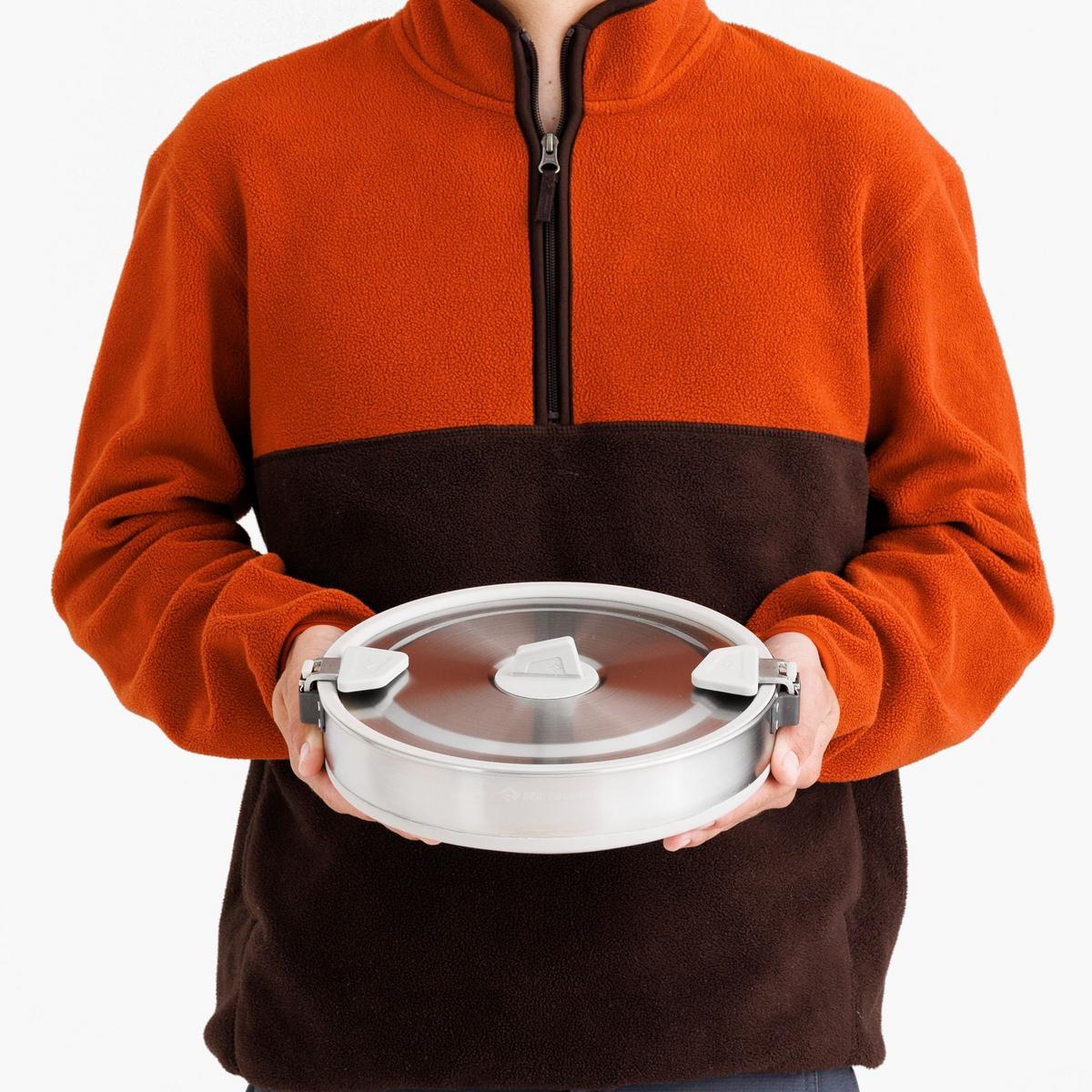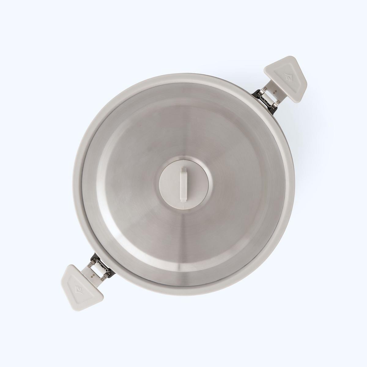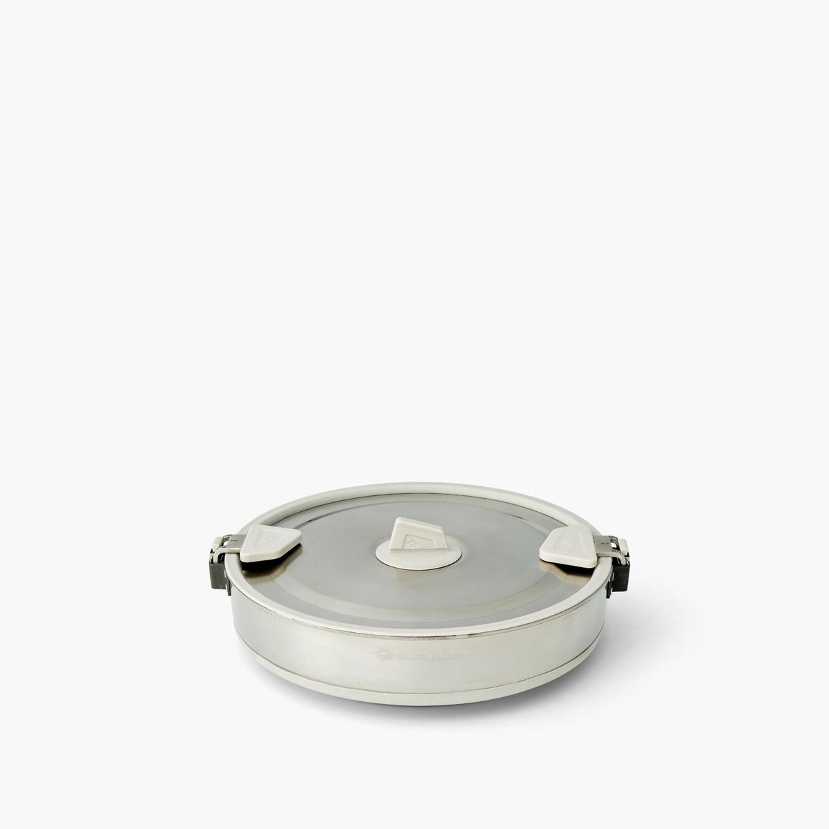 Induction-compatible, collapsible stainless steel pots with a three-layer base for even heat transfer form the heart of a great camp kitchen. Dual Click-Safe handles allow you to securely hold, carry and pour from the pots. The handles can be reversed to secure the lid (and any nesting tableware) during transport. A detour means sometimes taking the longer way on your journey; Detour cookware means you're the kind of person who doesn't cut corners.
