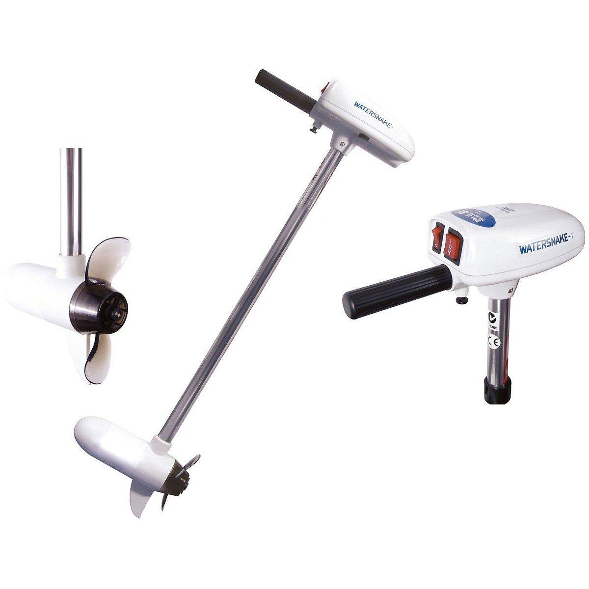 Watersnake ASP T18 Saltwater Electric Outboard Motor with BracketWatersnake ASP T18 Saltwater Electric Outboard Motor with Bracket is the ultimate in lightweight portability weighing only 4.85lbs (2.2kg). It’s the ideal trolling motor to use on kayaks, canoes, small dinghies and inflatable boats. Watersnake’s simple design keeps the weight down while delivering quality and performance. The adjustable transom mount fitting makes for easy attachment and has an anti-impact clip system. This easy to steer transom motor uses a hand tiller with an extendable handle, high and low speed control, forward and reverse switch and two blade weedless propeller design. Electric motor with 18lbs thrust and bracket included. Battery not included. 1 year warranty included, contact distributor for additional information.