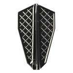 Introducing a new grid-like framework and overall durability improvements by three different thicknesses. The thickest portion runs along the edge. The added thickness around the sides and at the shaft socket strengthens the flight and will decrease tears along its length. By combining a medium thickness with the thinnest portion of the flight, it creates the inner lattice work. This combination works to disperse external pressure. This decentralization of the external pressure has an effect not only on durability but also on shape retention, which will greatly extend the usable life of the flight.