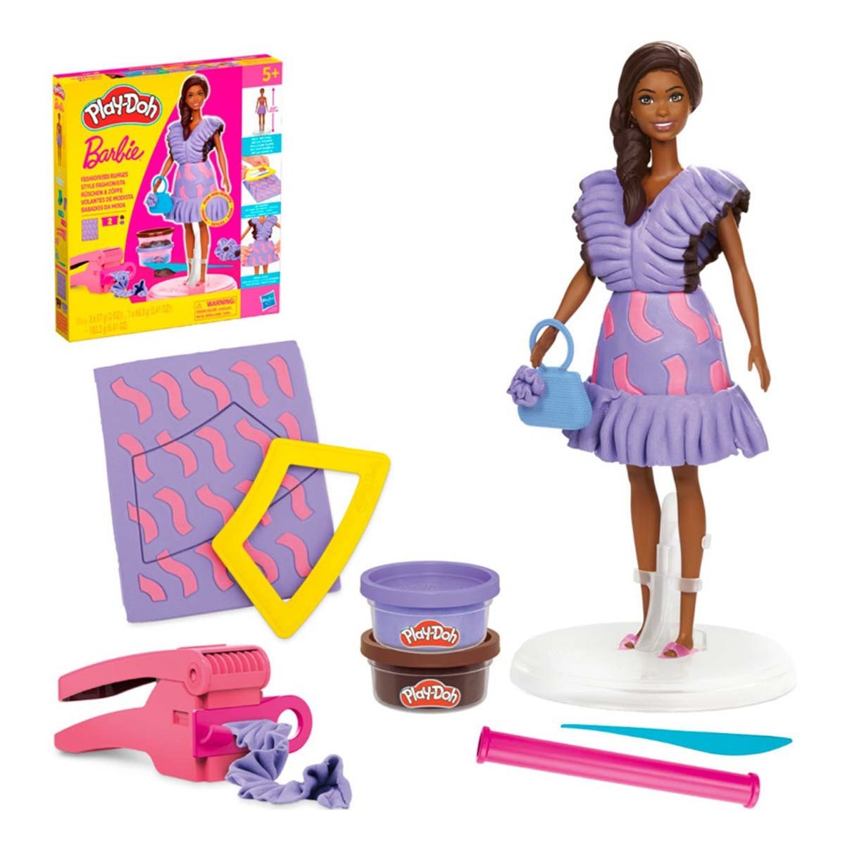 Unleash fashion creativity with a Barbie doll plus tools and Play‑Doh for crafting clothes, hair, and accessories! Includes patterned compound sheets, molds, cutters & themed accessories.