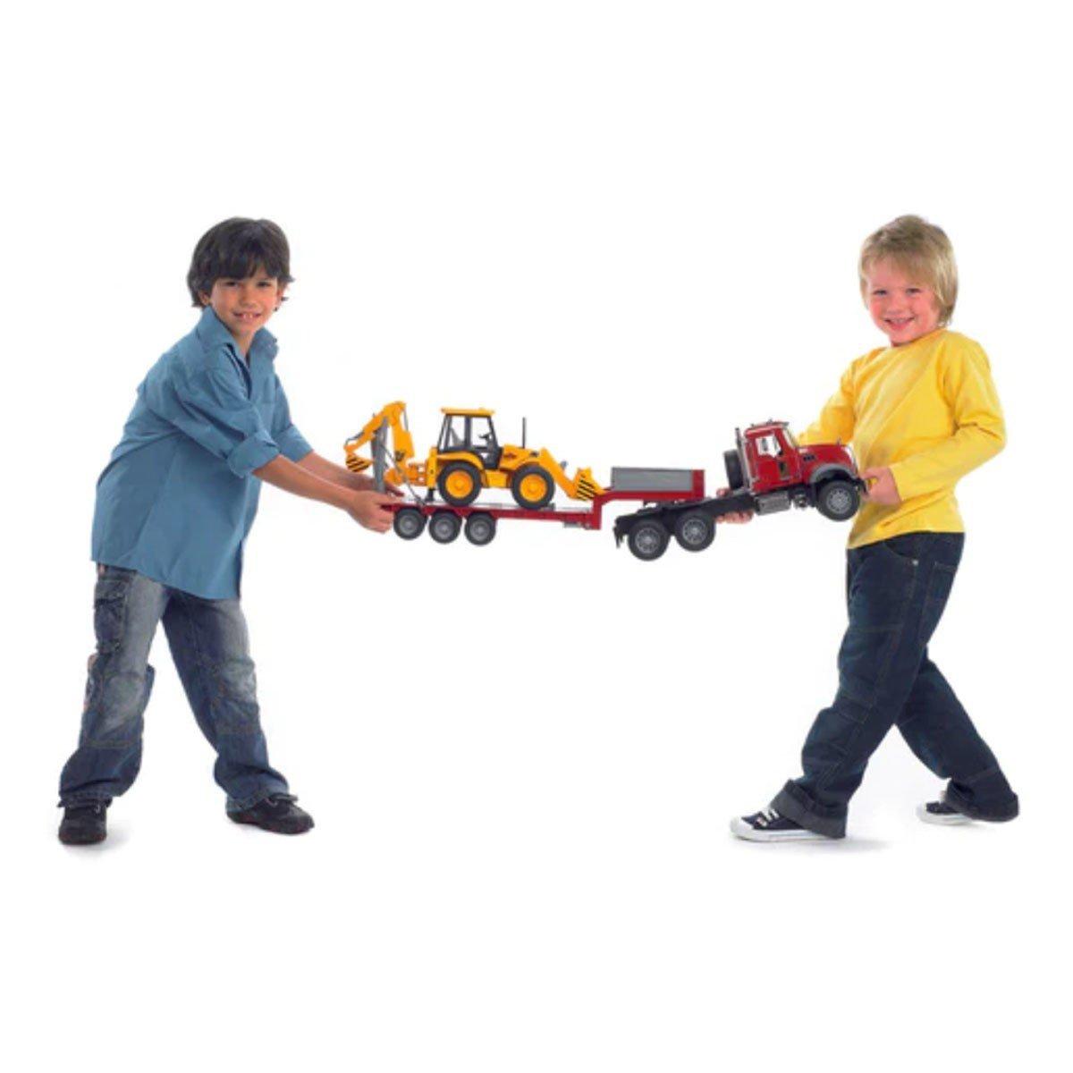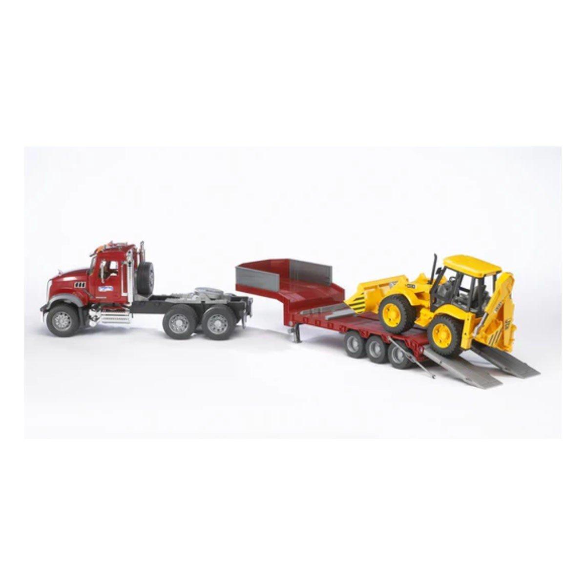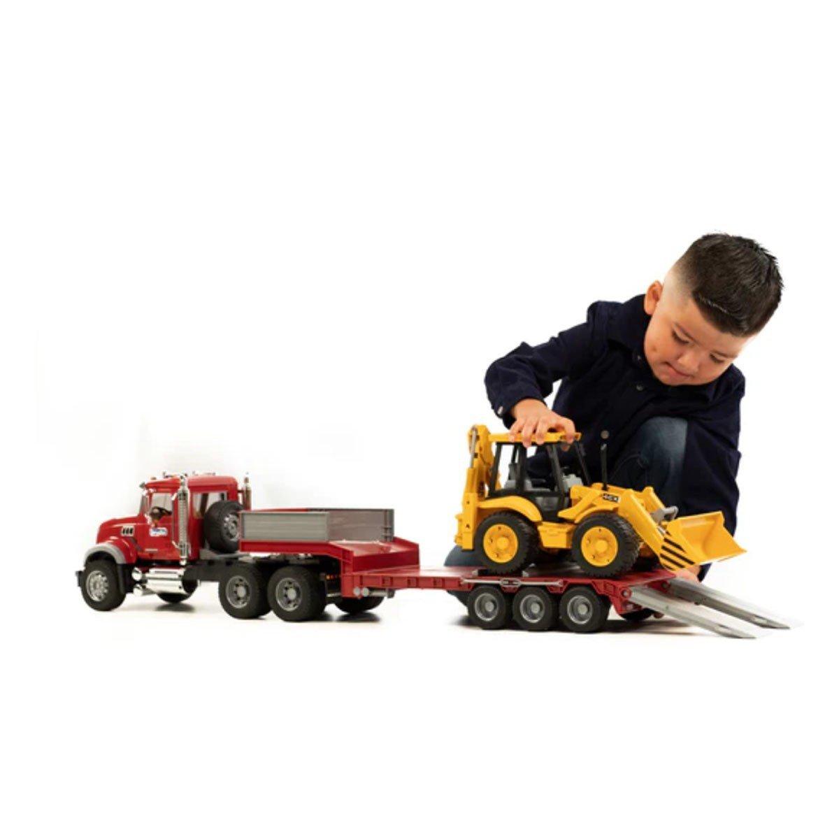 Bruder Toys MACK Granite Flatbed Truck w/JCB Loader Backhoe
