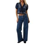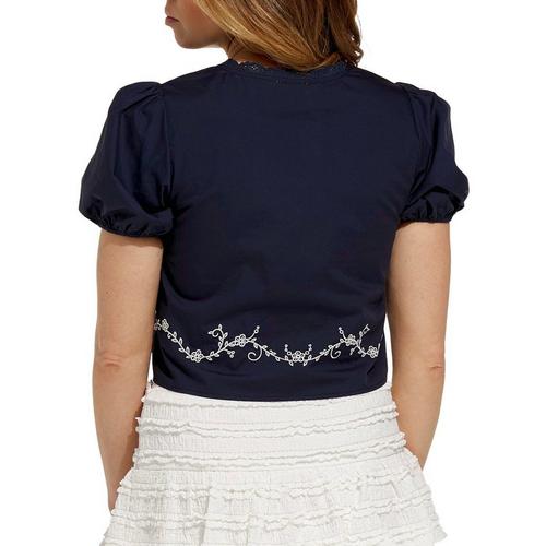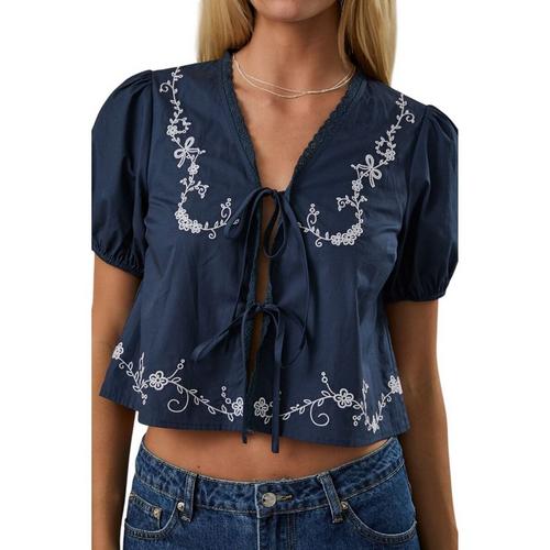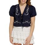 Old Price:Women's Le Lis Puff Sleeve Tie Front V-Neck Shirt