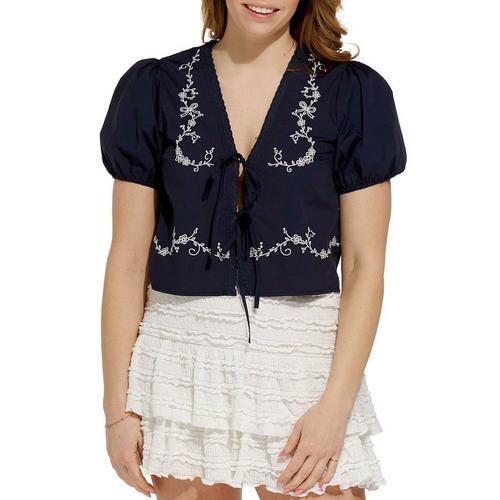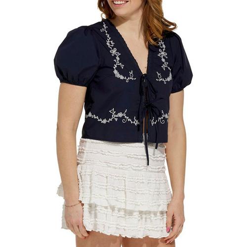 Women's Le Lis Puff Sleeve Tie Front V-Neck Shirt