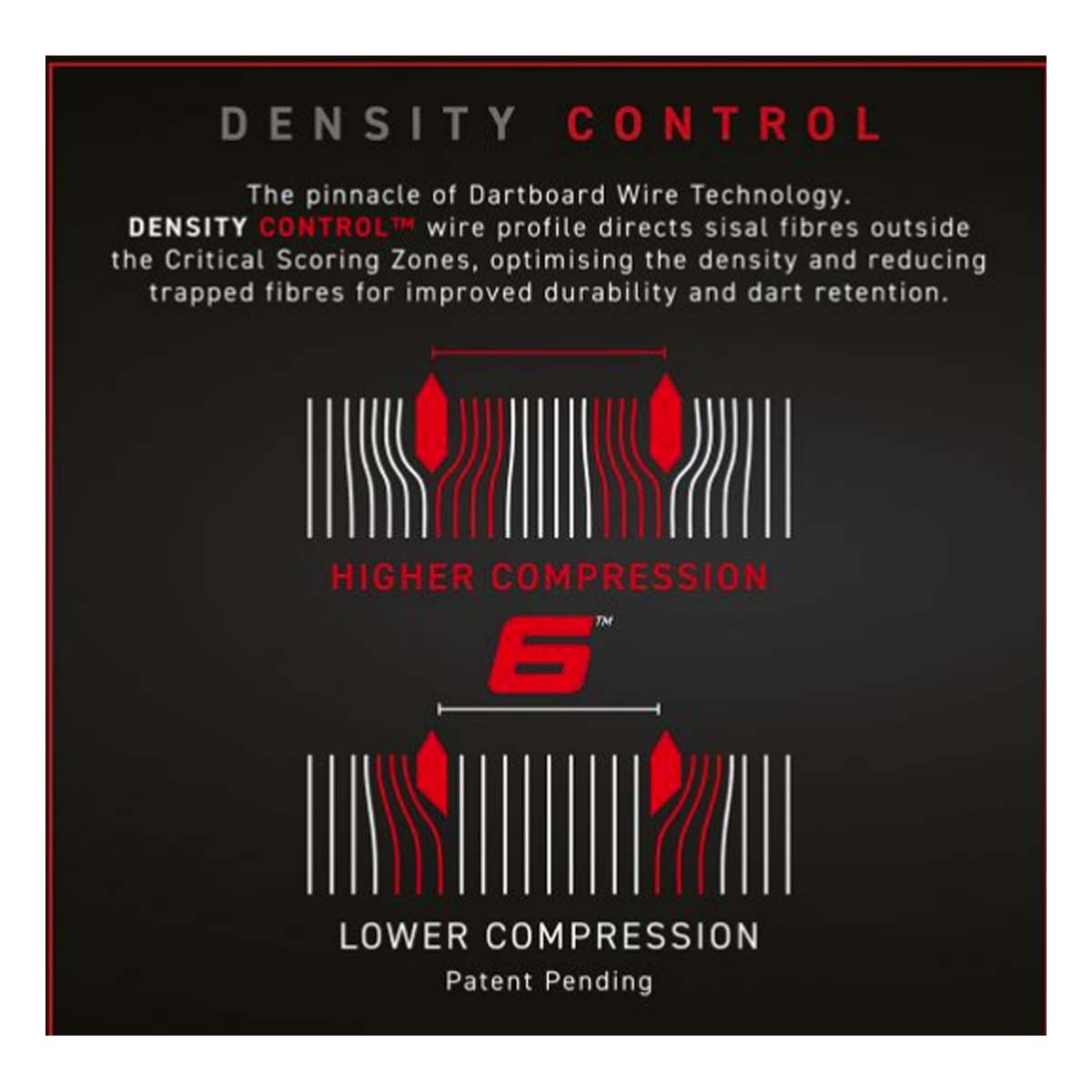 The ultra-thin 60° angled wire deflects darts into the scoring area for absolute minimal bounce outs. The fully hardened bullseye and outer bull, both featuring ‘Density Control™’ wire, are now 25% thinner.