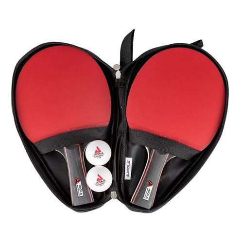 The JOOLA Duo Pro Table Tennis Racket Set is a high quality collection of everything you need to play competitive and social table tennis games. The set included 2 Match Pro ping pong rackets, 3 x 3 Star Tournament Balls and a Dual Paddle Protective Case.
