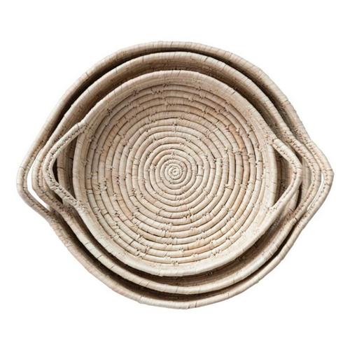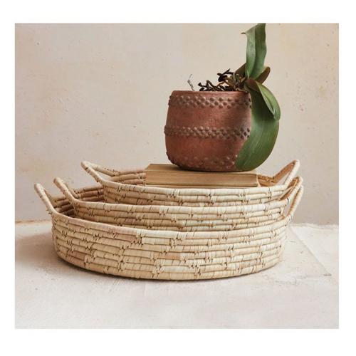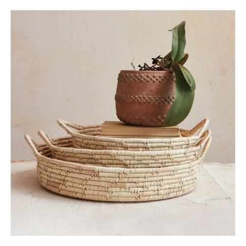 Creative Co-Op Decorative Hand-Woven Grass & Date Leaf Baskets w/ Handles