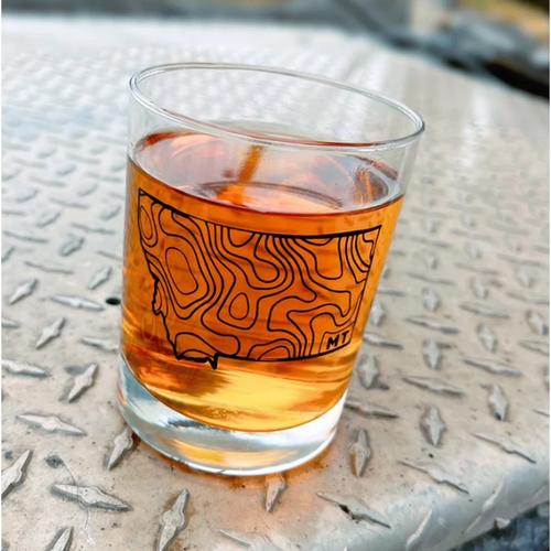 Back Road Design Montana Topographic Double Old Fashioned Glass