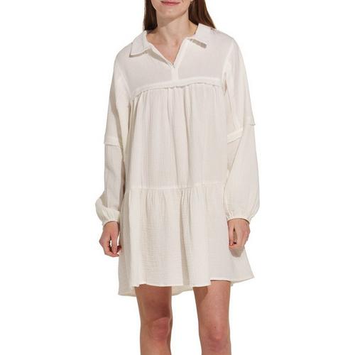 Women's Ces Femme Collared Long Sleeve Notch Neck Shirt Dress