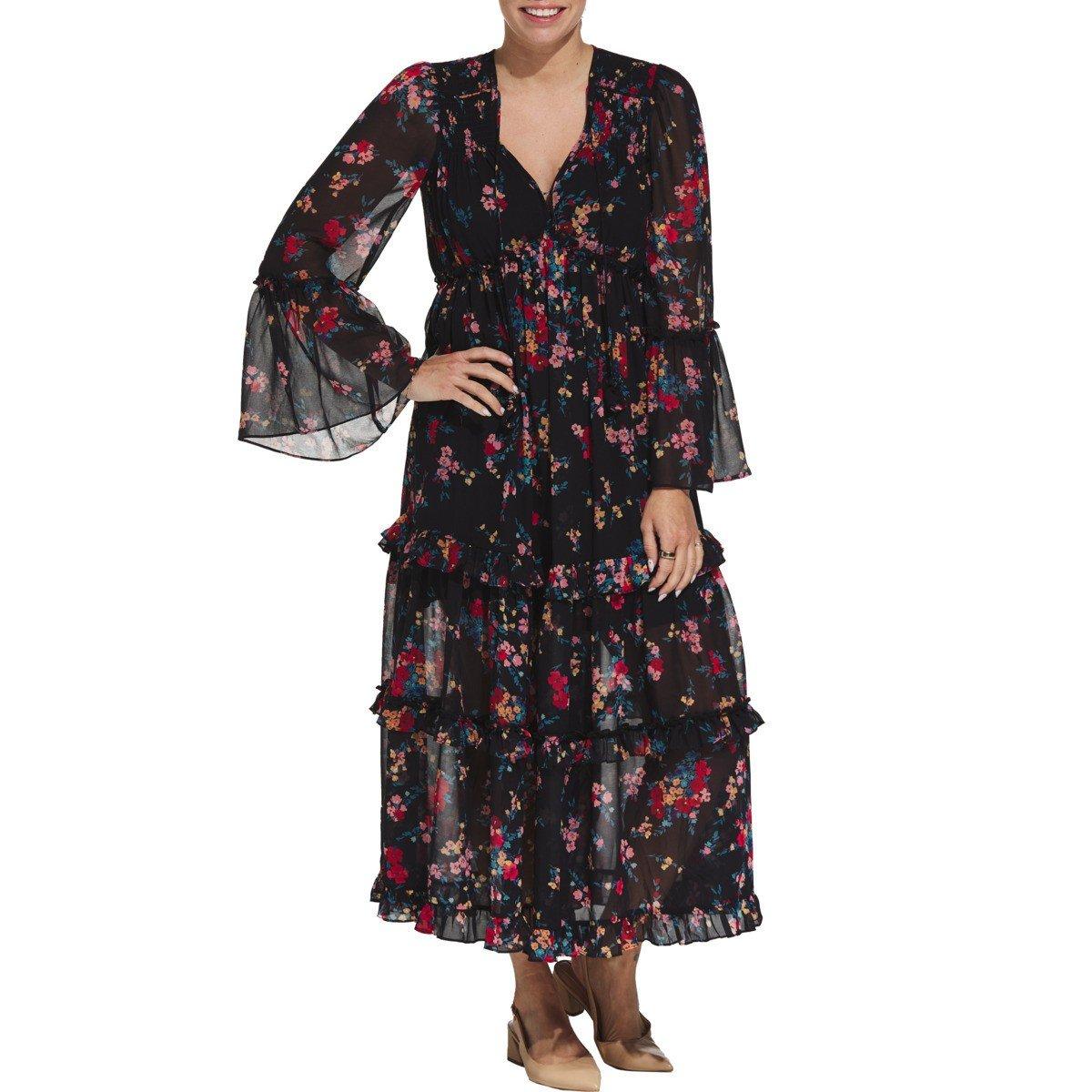 Old Price:Women's DRESS FORUM Flowy Tiered Long Sleeve Maxi Dress