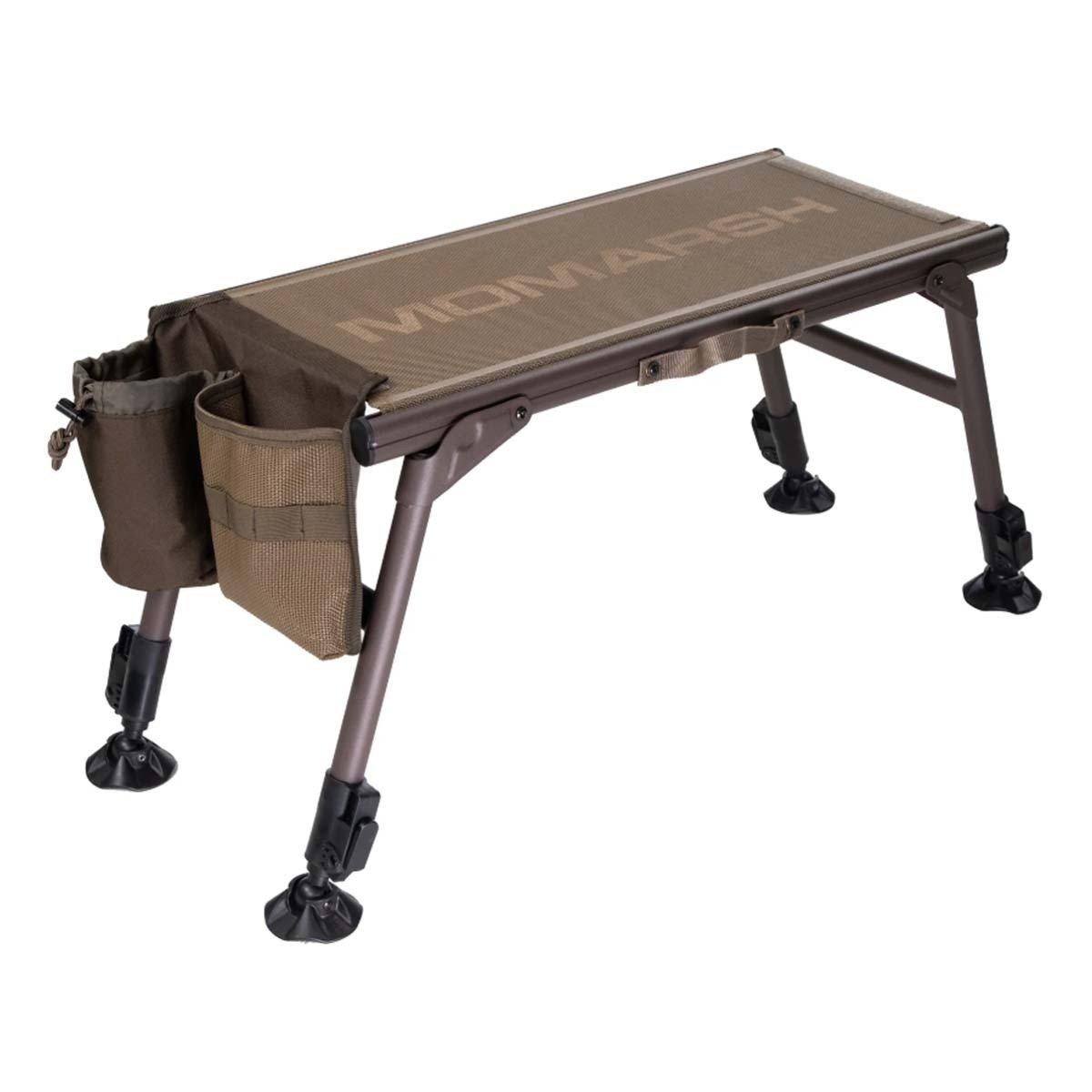 What sets this bench seat apart is the thoughtful extras that enhance your hunting experience. It features a comfortable mesh seat for long-lasting comfort and quick drainage to keep you dry. Plus, it comes with a removable pocket and drink holder to keep your essentials within arm's reach. With a handy carry handle, it's easy to transport, and it's accommodating dimensions, with a bench height range of 15" to 20" and a width of 26.5", make it perfect for hunters of all shapes and sizes. Weighing in at only 4.5 lbs., this bench seat won't weigh you down during your hunts, making it the ideal choice for hunters on the move. Don't settle for less when you can have the best in hunting comfort and convenience with the MOMARSH Mobile Bench Seat.