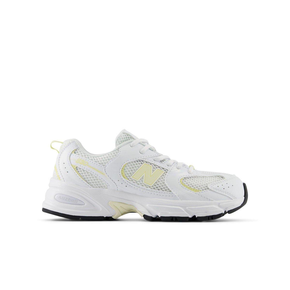 The Big Kids' New Balance 530 Sneakers offer a perfect blend of comfort and style for active kids. Featuring ABZORB midsole technology, these sneakers absorb impact with a combination of cushioning and compression resistance, ensuring all-day comfort. The throwback design gives them an on-trend, retro look, while the durable rubber outsole provides excellent traction for everyday wear. Crafted with a breathable mesh upper and supportive overlays, the New Balance 530 Sneakers are built to keep up with your child's active lifestyle.