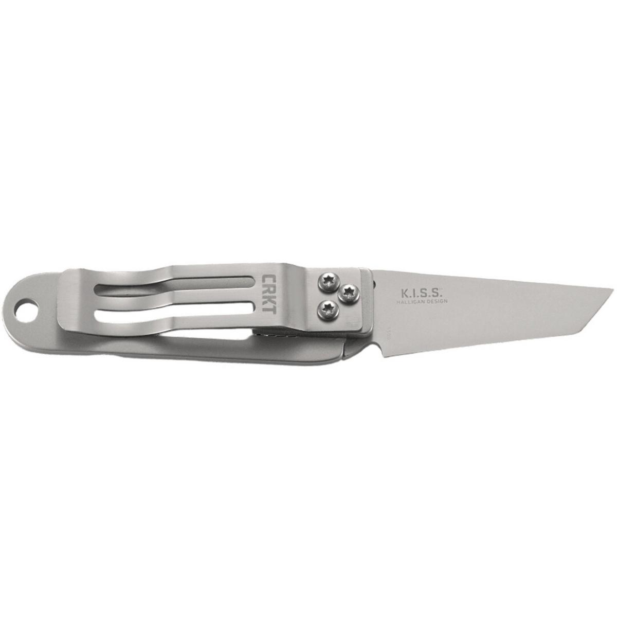 The Original K.I.S.S.® blade shape is Tanto-inspired—Chisel-Point grind on the front and flat on the backside—so that when the blade is closed onto its handle/frame, the precision fit effectively "seals" the cutting edge to the frame, even though it's exposed. Both Razor-Sharp and Combined Razor-Sharp and Triple-Point™ Serrated edge grinds are available. Both blade and frame are 3CR13 stainless steel in a fine bead-blast finish.
