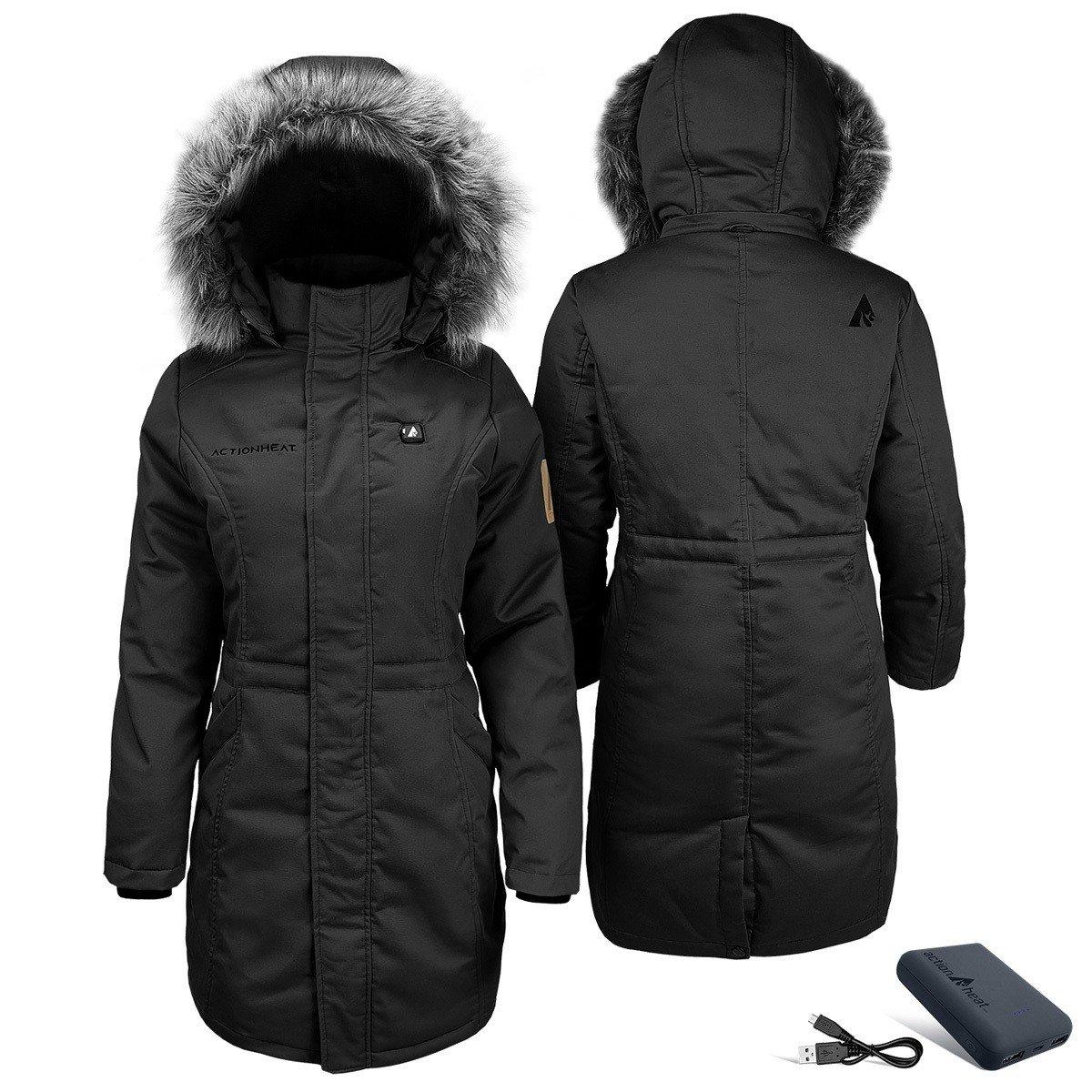 The ActionHeat Women's Heated Parka Jacket is here to keep you warm no matter the conditions. Featuring four heating zones on the chest, upper back, and neck, this heated parka will keep you warm for as long as you need. With the new fashionable design and attractive color, you can stay dry & warm even in the toughest winter elements.