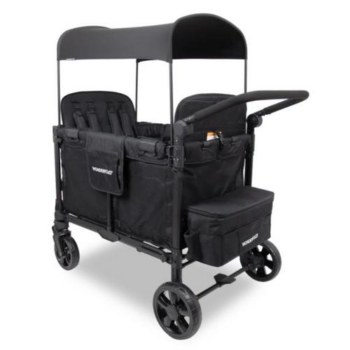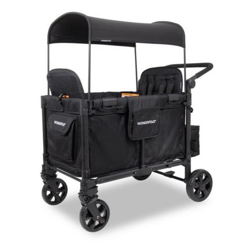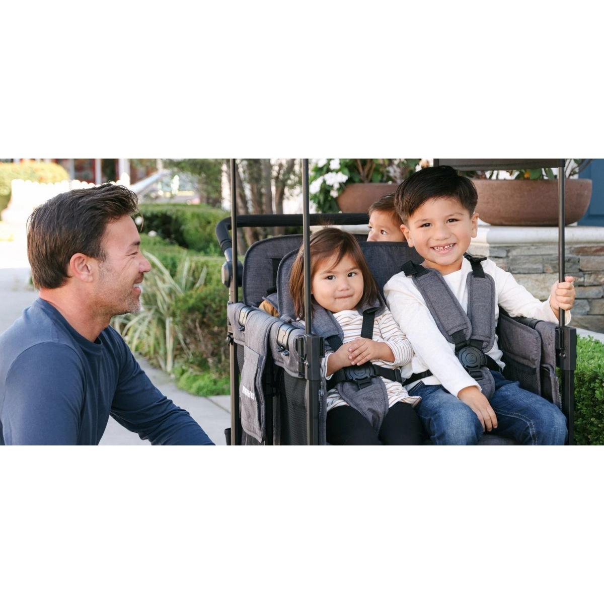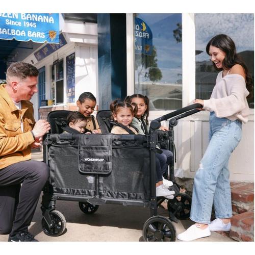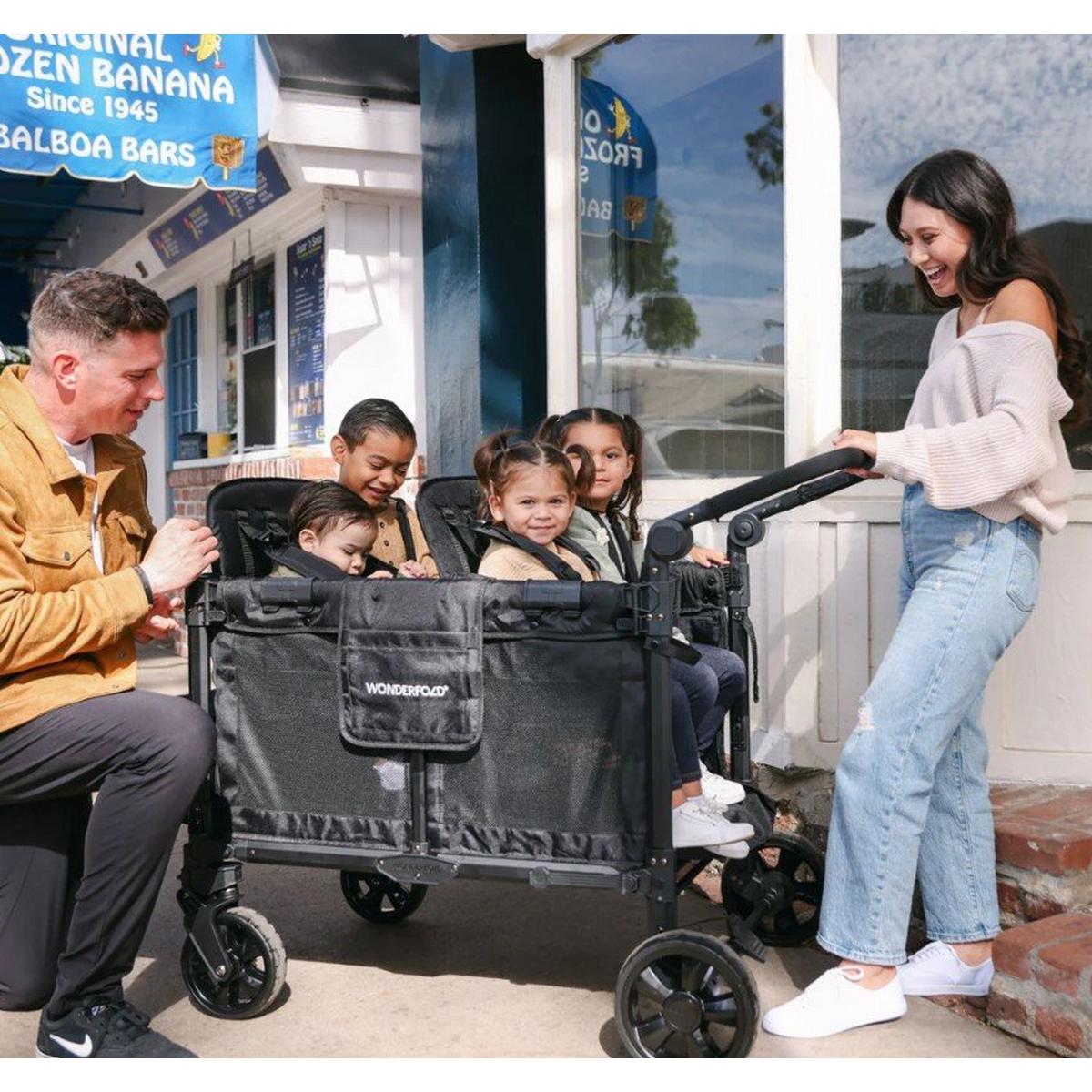 Venture out effortlessly with the W4 Elite Pro Stroller Wagon. It features elevated, reclining seats for a better view, spacious seating for up to four, a lightweight aluminum frame, safety features, and sun protection. Versatile seating can face forward or backward, with removable frames and front-zippered entrances for easy access. With WonderFold, focus on creating lasting memories, not just managing logistics.