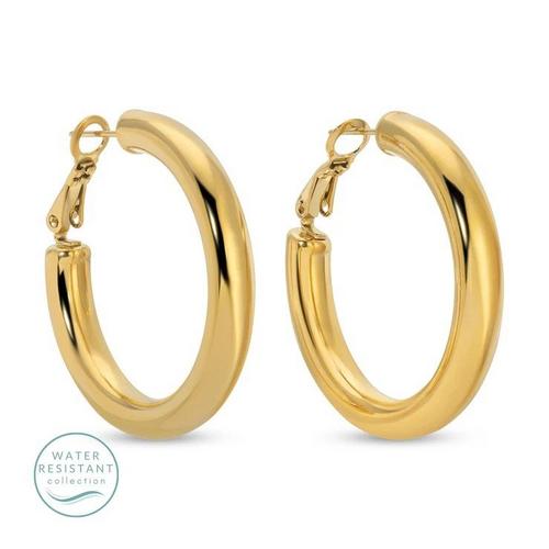 Thanks to their water-resistant finish, they’re built to keep their brilliance through showers, workouts, and beach days. With their timeless silhouette, these 18k gold PVD plated hoops are a versatile essential for any jewelry collection.