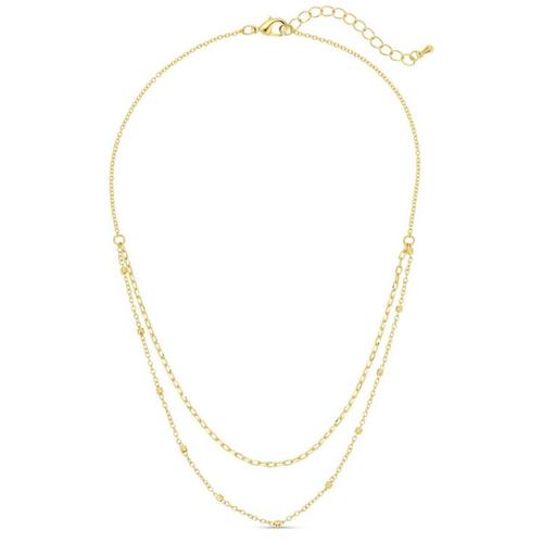 Necklace- Double Appearl Necklace: Delicate paperclip and accented delicate chain layers