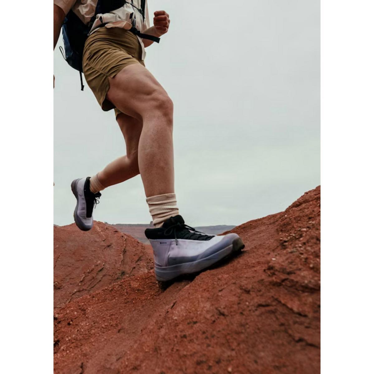 Agile and light, supportive and comfortable – the Kopec Mid GTX is the all-season hiker for confident travel on varied terrain. Made for day hikes and minimalist multiday treks, its PFAS-free GORE-TEX protection seals out water and snow. The CORDURA mesh upper is durable and light, a moulded pad protects your ankle, and the wide toe box gives you room to splay. Cushioning and support come from the dual-density midsole, and the Vibram Megagrip outsole and custom lug pattern deliver a secure grip.