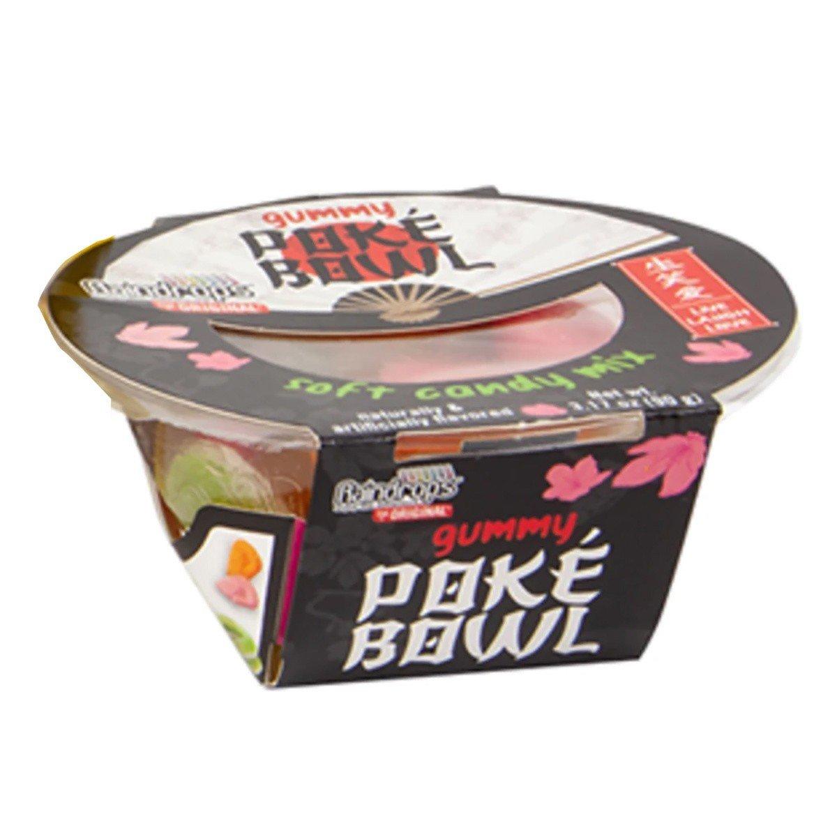 Poke Bowl fans will appreciate being able to enjoy their favorite food for dessert with Raindrops Gummy Poke Bowl. Inside the bow packaging are an assortment of gummies and chewy candy in Poke inspired shapes like fish and shrimp.v