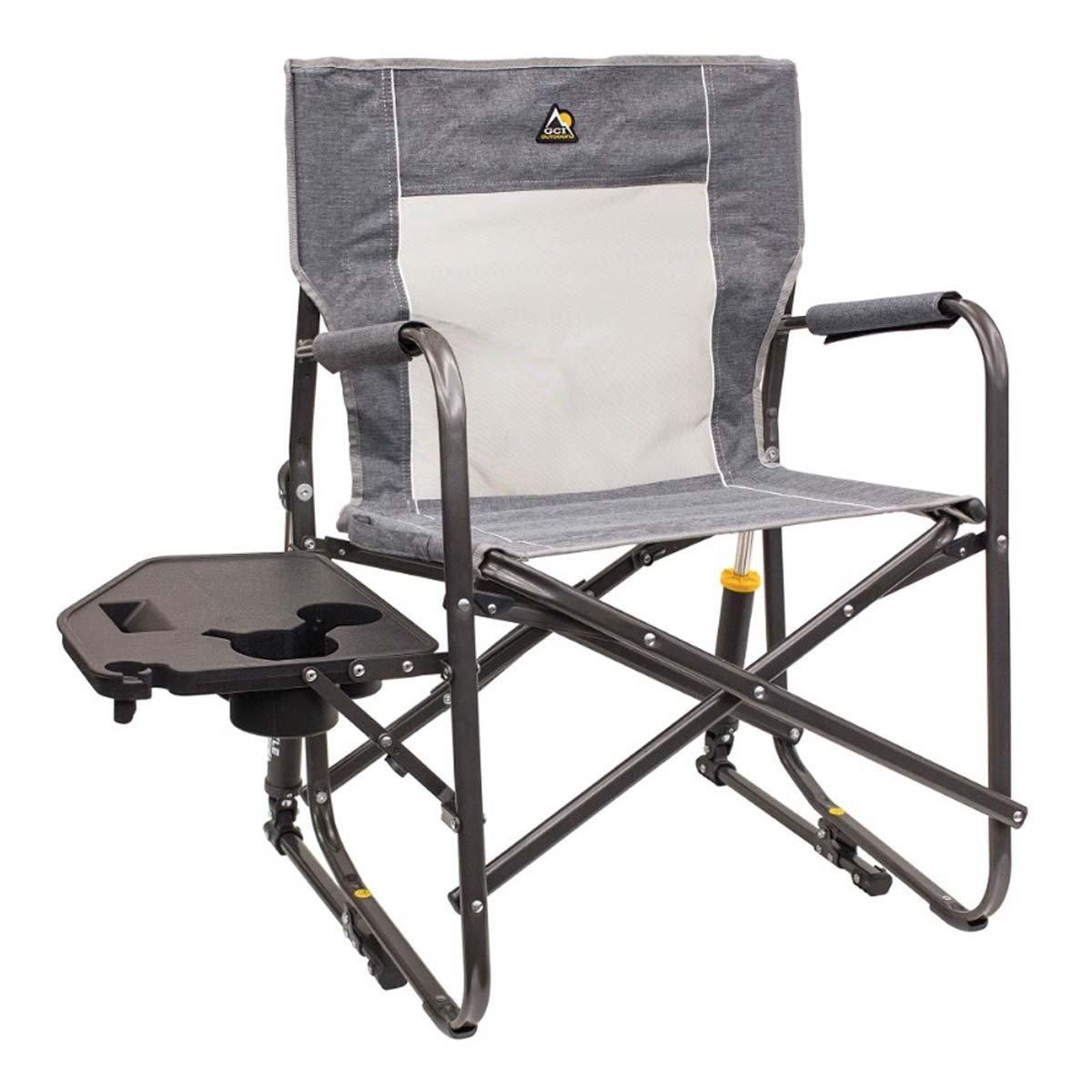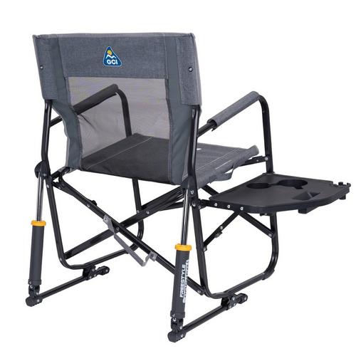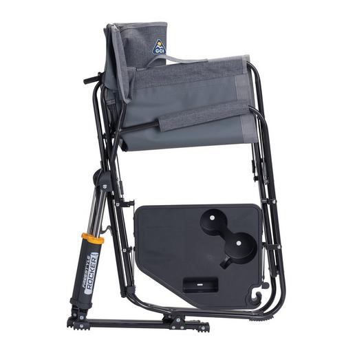 Stay comfortable enjoying your backyard, camping, or attending a sporting event with the GCI Outdoor Freestyle Rocker with Table. Featuring patented spring-action rocking technology and Eazy-Fold technology, this chair is comfortable, stable, and offers a smooth rocking experience. The mesh backrest ensures continual airflow, while the built-in carry handle makes it easy to take with you wherever you go. Plus, with the attached table, you'll be able to keep your beverage and small essentials close by. Make the most of your time outdoors with the GCI Outdoor Freestyle Rocker with Table.
