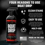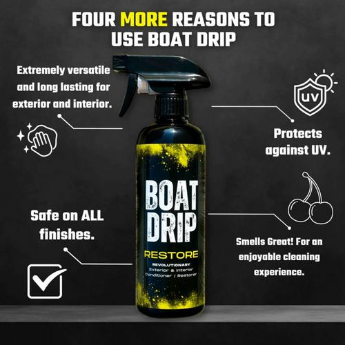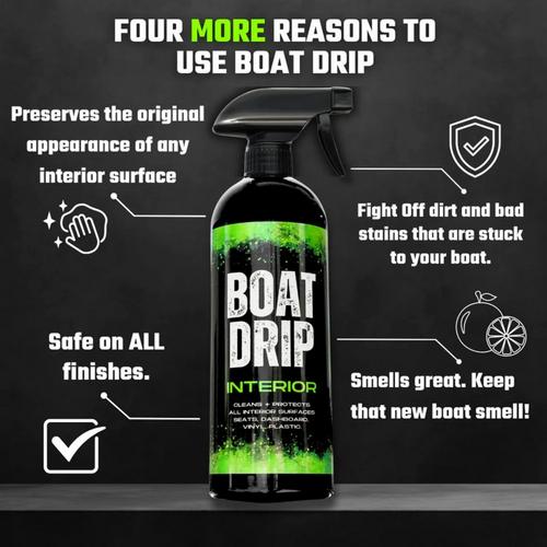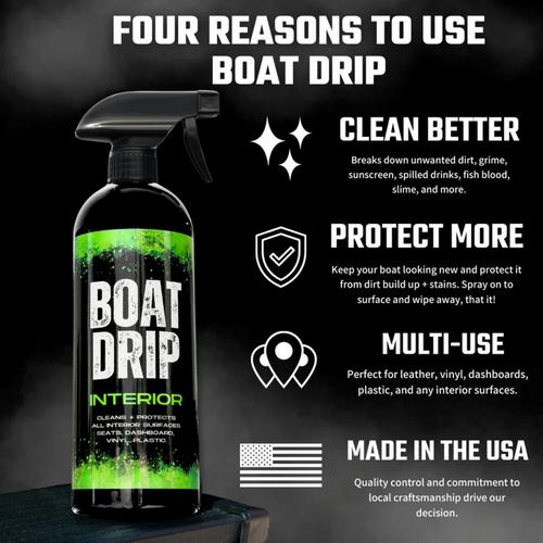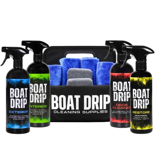 The ultimate bass boat care solution is here! The Boat Drip All-In-One Bass Boat Cleaning Kit comes with everything you need to keep your boat looking flawless—all stored in a compact, durable carrying case that fits seamlessly on your boat. This kit includes our top-tier cleaning and restoration products, designed to tackle dirt, grime, and UV damage on every surface. From your exterior hull to your vinyl seats and deck, we’ve got you covered.