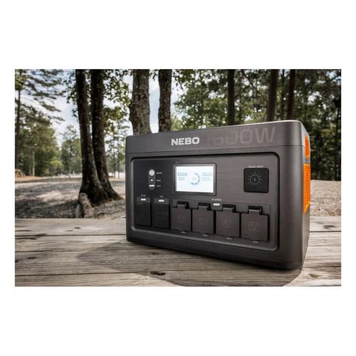 The PINNACLE™ 1600 Power Station provides powerful performance for multiple users across multiple days, portability to keep up with your travels, a robust design, and versatile charging capability. Easily charge the power station at home, in the car or via the sun (solar panel not included) as you prepare to head into the outdoors or off-grid. Once it’s charged up, you’ll have the confidence and adaptability to power just about and device thanks to the 12-way output via the dual USB-A ports, dual USB-C Power Delivery (PD) ports, wireless charging pad, four AC ports and three DC charging ports. The powerful 1600W AC inverter means that you’ll always have an outlet available, so you have the freedom to work remotely or stay connected and with NEBO OVERDRIVE™, you’ll have access to an expanded watt capability to power essential devices during a power outage or higher watt hungry items up to 2000W. The PINNACLE 1600 was designed with heavy-duty handles to make portability easier and port covers to protect it from dust or debris and help prolong the lifespan of the unit. The LCD color display is easy to read, offering real-time input and output data while the integrated floodlight makes it a great emergency tool.