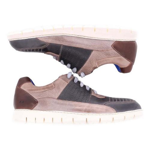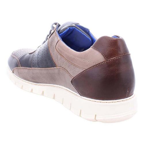Dimension and design aside, the Fairman is a cool low-top leather sneaker with details, details, and more details. Let’s start with the 3-tone finish, sweeping from dark and light grays to warm browns. Layered leather panels and unique topstitching accents give the Fairman its distinct character. We lined the interior in blue leather, added a breathable and comfortable insole, and completed the comfort with a padded collar. A 5-eye lace-up and a lightweight outsole round out this must-have sneaker.