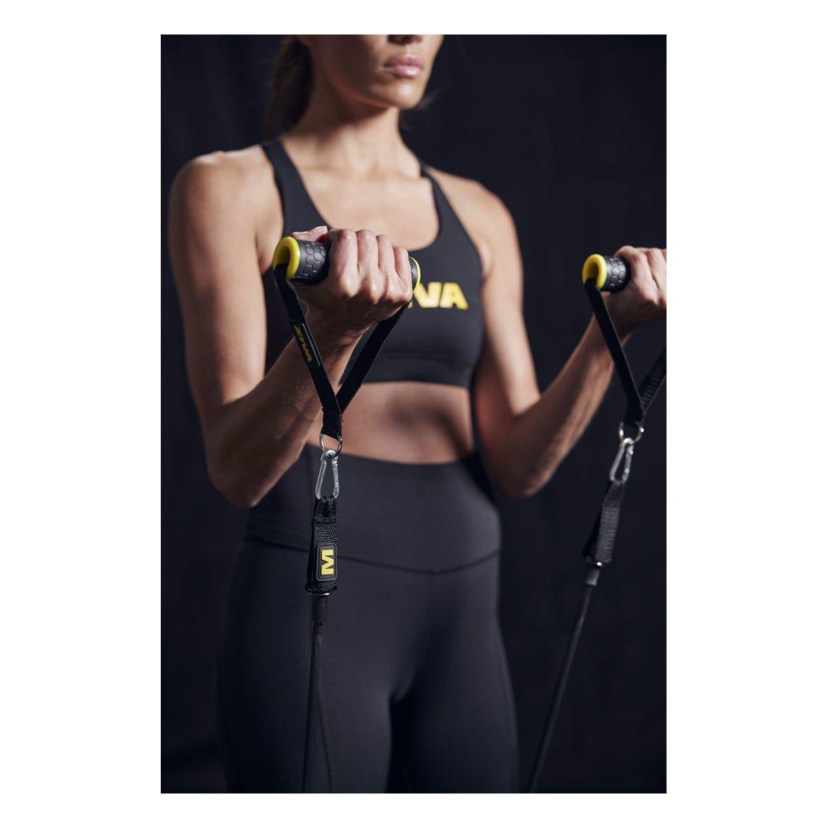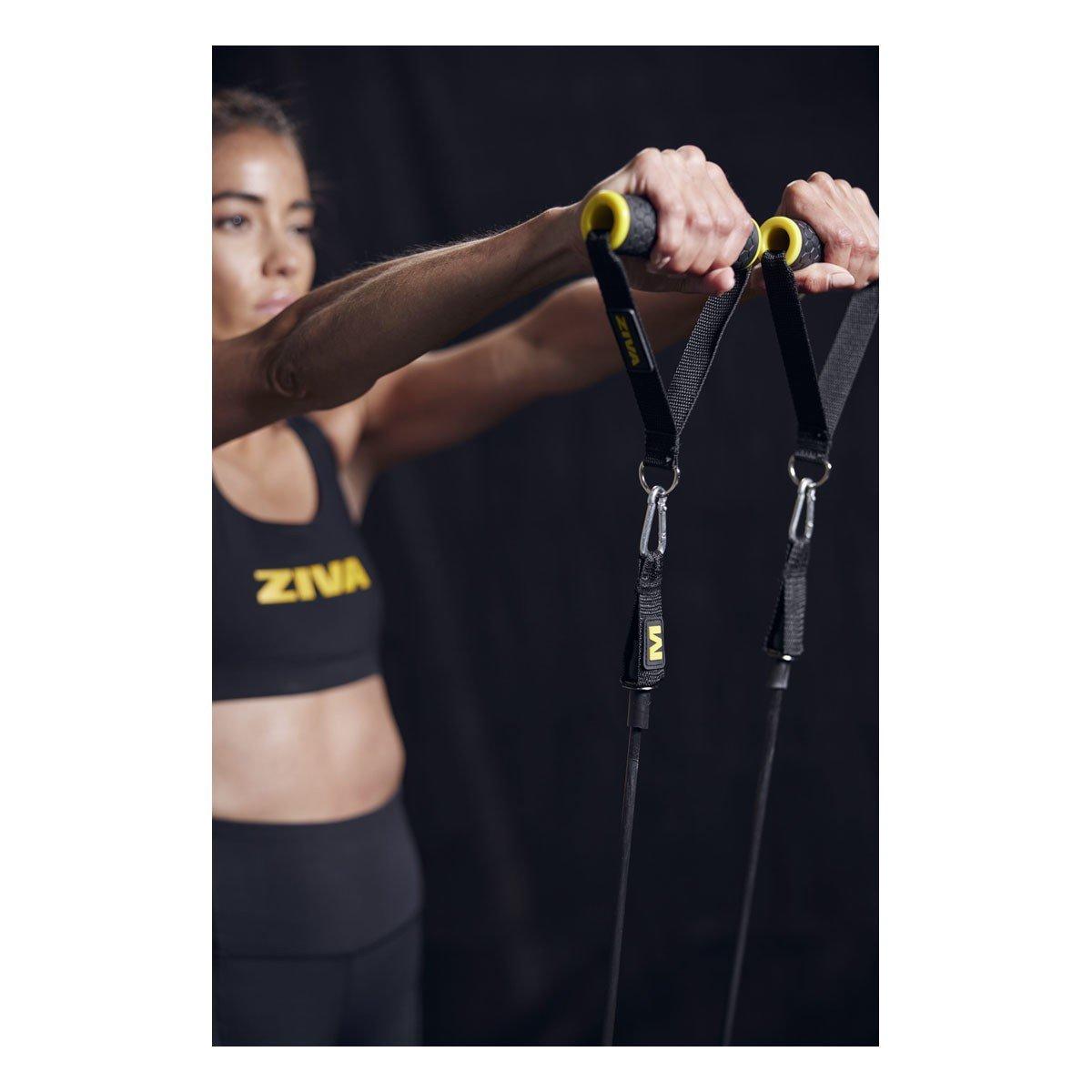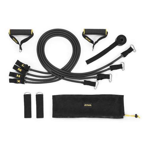 No matter how varied and extensive your workout, you don’t need a spare room for your home gym; with the ZIVA Power Resistance Band Set, you have all the equipment you need to perform nearly any exercise, and it all fits in an ultra-portable 2-lb. carrying case. The set comes with high-durability, high-elasticity thermoplastic rubber bands that simulate 4 levels of resistance: 10, 15, 25, and 35lbs. For more advanced athletes on the move, you can use increase resistance by using more than one band at a time for a maximum of 96lbs. With its detachable, non-slip, antibacterial handles and tough nylon ankle straps, you have the versatility to work out any body part from any angle, almost anywhere. Stand on the bands, using your foot as an anchor, and use them by themselves; loop them around any suitable pole for a quick workout; or use the included door anchor to turn any room’s entryway into your personal fitness studio. However you do it, the Performance Power Resistance Band Set keeps workouts engaging, exciting, and inspiring.