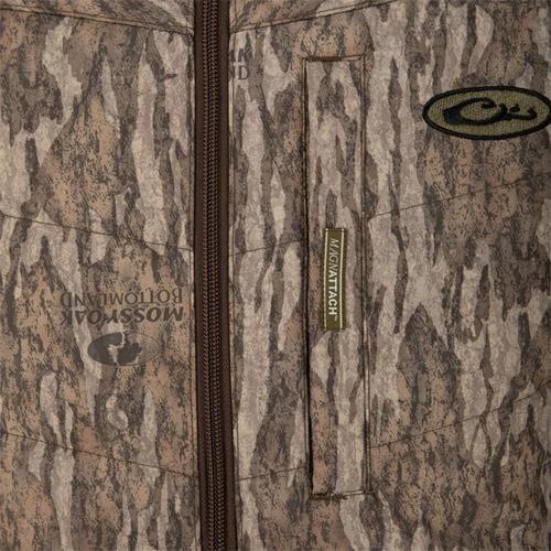 This versatile, MST Synthetic Down Hooded Jacket offers a lightweight and extremely comfortable design that will keep you warm on those cold morning hunts or those chilly nights in camp. Featuring a traditional, horizontal baffle design, durable and abrasion-resistant, matte-finish shell material, and drawcord adjustable waist, this jacket works equally well as an outer layer as it does a mid-weight, insulated layering garment. Magnattach™ left chest pocket is perfect for your cell phone or duck calls.