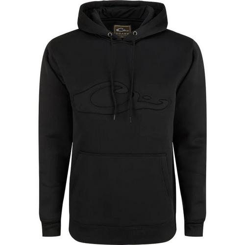 The Drake Back Eddy Embossed Logo Hoodie features 100% polyester with a raised Drake logo, which gives you a stretchy hoodie that keeps its shape. We finished the hoodie with a DWR coating which helps shed a light rain or snow shower. It is a great piece to wear alone, or it can be used as a mid-layer piece for those chilly winter mornings. Complete with a traditional kangaroo pocket to keep your hands warm along with a 3-piece lined hood with adjustable drawstrings for adjustability, the Embossed Logo Hoodie will be part of your wardrobe for years to come.