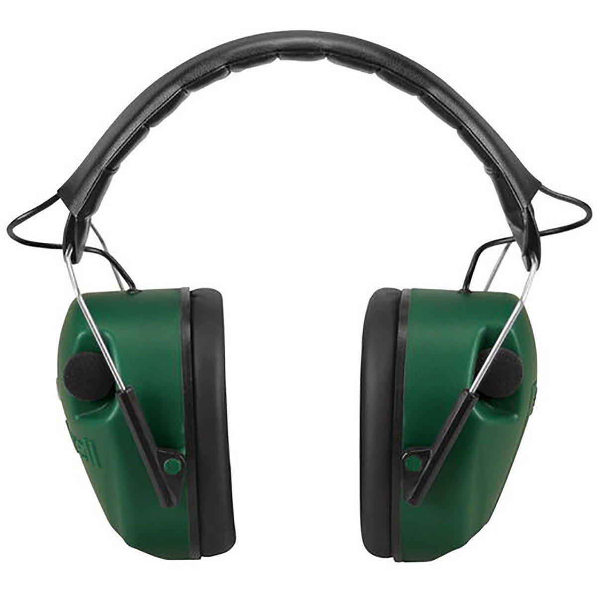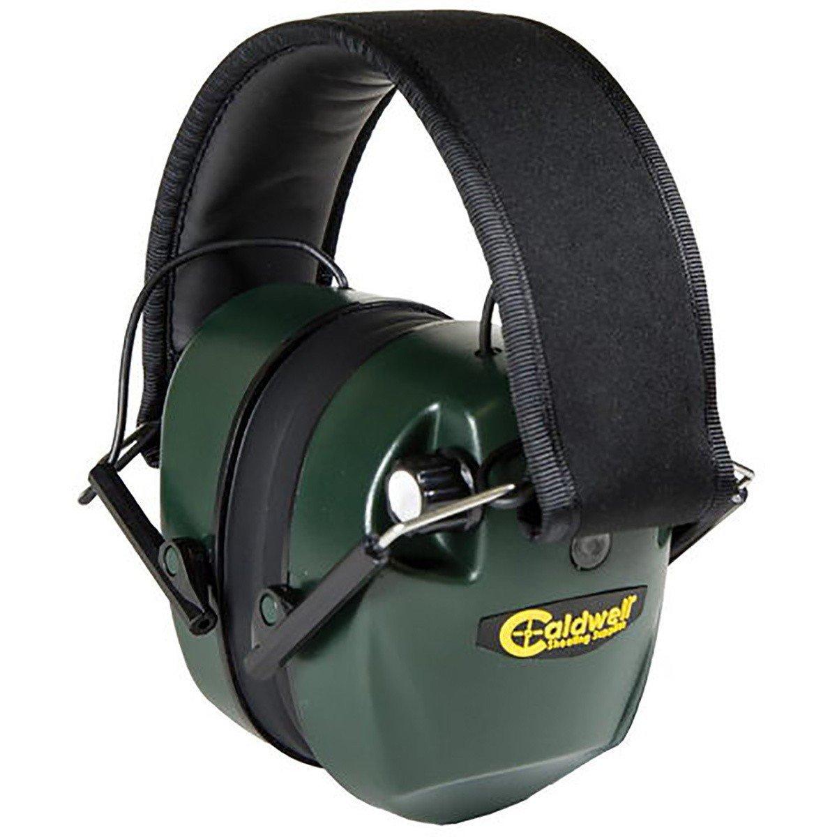 The Caldwell® E-Max® hearing protection combines great circuitry with a standard earcup for better protection. The two microphones in the E-Max amplify sounds below 85 decibels, which amplifies normal communication, range commands, and environmental sounds. Above 85 decibels, the microphones shut off to protect the shooter's hearing. Ear cup width is 1.75 inches and two AAA batteries are required but not included. Enabled with one stereo microphone in each cup, the user can localize sound from all directions. 25dB Noise Reduction Rating.