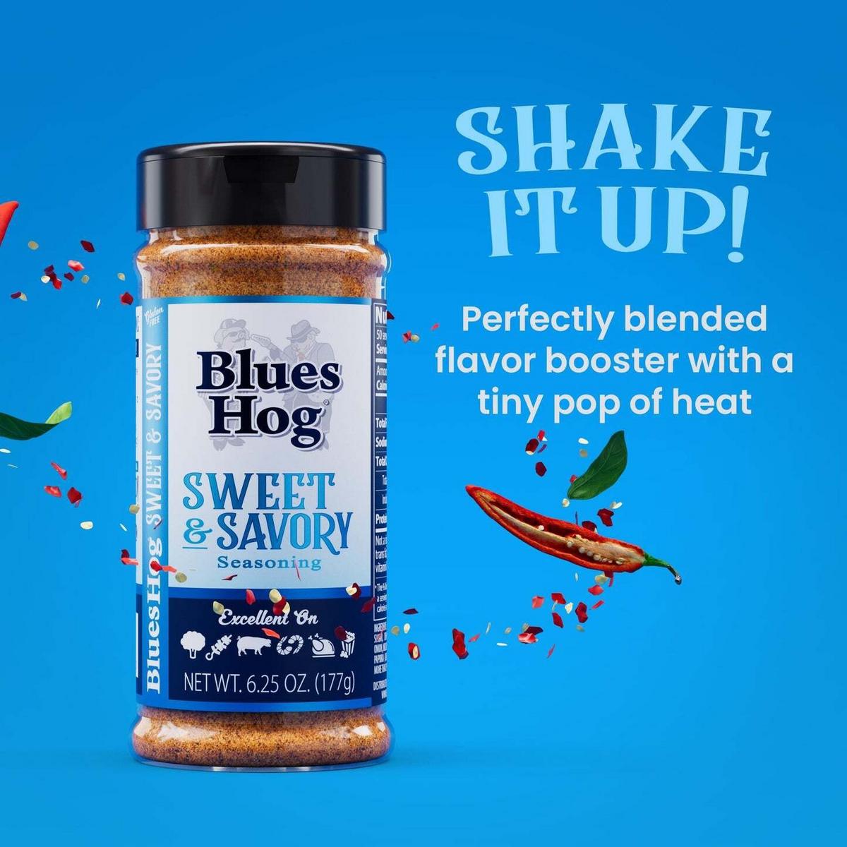 The name says it all! Blues Hog Sweet and Savory Seasoning is the perfect, well-balanced flavor combination, finishing with a hint of heat. It is our most versatile seasoning. Great on literally everything!