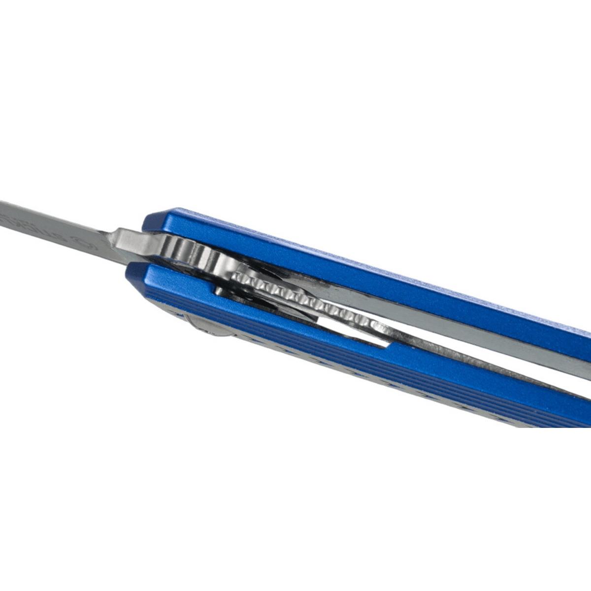 {"reviews":[],"offset":0,"limit":10,"total":0}"Full Description:\nPaying homage to vintage melon testers and coffin jack pocket knives, Jeff Park introduces the Stickler™. As a sleek folding knife, the blade is concealed in a cobalt blue handle when closed. And thanks to its Assisted Opening technology, the Stickler™ deploys fast and smooth whenever you’re ready to put it to use. A classy gentleman design with a touch of personality, it’s an old soul in a brand new build.\n\nFeatures:\n\u003cul>\n\u003cli>Assisted Opening: Flipper deploys the blade fast\u003c/li>\n\u003cli>Superior Performance: 12C27 blade steel for excellent edge retention\u003c/li>\n\u003cli>Smooth Opening: IKBS™ ball bearing pivot deploys the blade smooth\u003c/li>\n\u003cli>Easy Closing: Liner Lock can be easily closed with one hand\u003c/li>\n\u003cli>Lightweight and Strong: Aluminum combines strength with minimal weight\u003c/li>\n\u003cli>Low Profile: Pocket clip provides secure carry\u003c/li>\n\u003c/ul>\n\nSpecifications:\n\u003cul>\n\u003cli>Model: Stickler\u003c/li>\n\u003cli>OAL: 8"\u003c/li>\n\u003cli>Blade Material: 12C27 Sandvik SS\u003c/li>\n\u003cli>Edge Type: Plain\u003c/li>\n\u003cli>Style: Folding\u003c/li>\n\u003cli>Thickness: 0.11"\u003c/li>\n\u003cli>Open Type: Flipper\u003c/li>\n\u003cli>Blade Description: Satin\u003c/li>\n\u003cli>Handle Material: Aluminum\u003c/li>\n\u003cli>Blade Length: 3.38"\u003c/li>\n\u003cli>Handle Description: Blue / Silver\u003c/li>\n\u003cli>Includes: Pocket Clip\u003c/li>\n\u003cli>Weight: 2.40 oz\u003c/li>\n\u003cli>CLOSED LENGTH: 4.60"\u003c/li>\n\u003cli>Lock Type: Liner lock\u003c/li>\n\u003c/ul>\n"