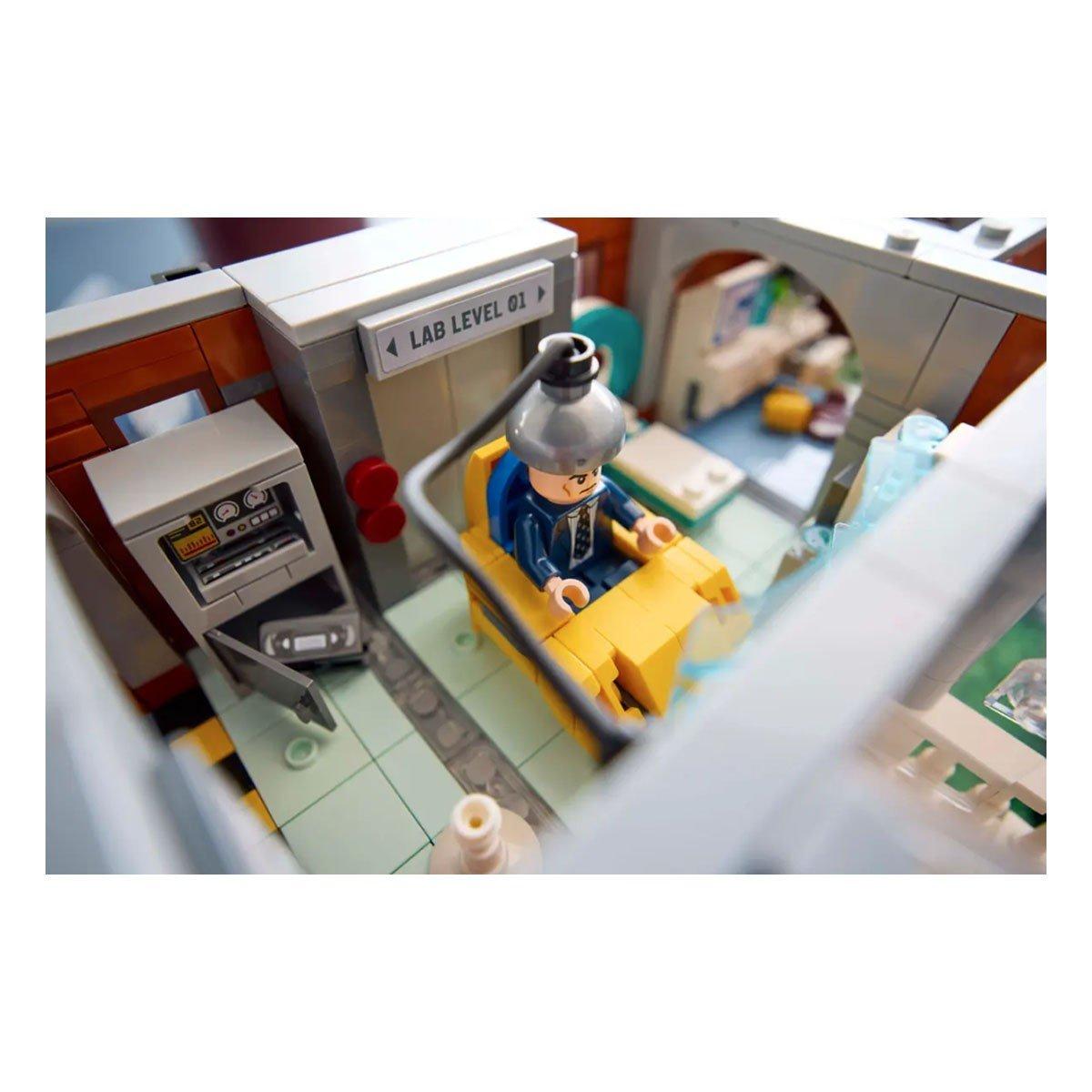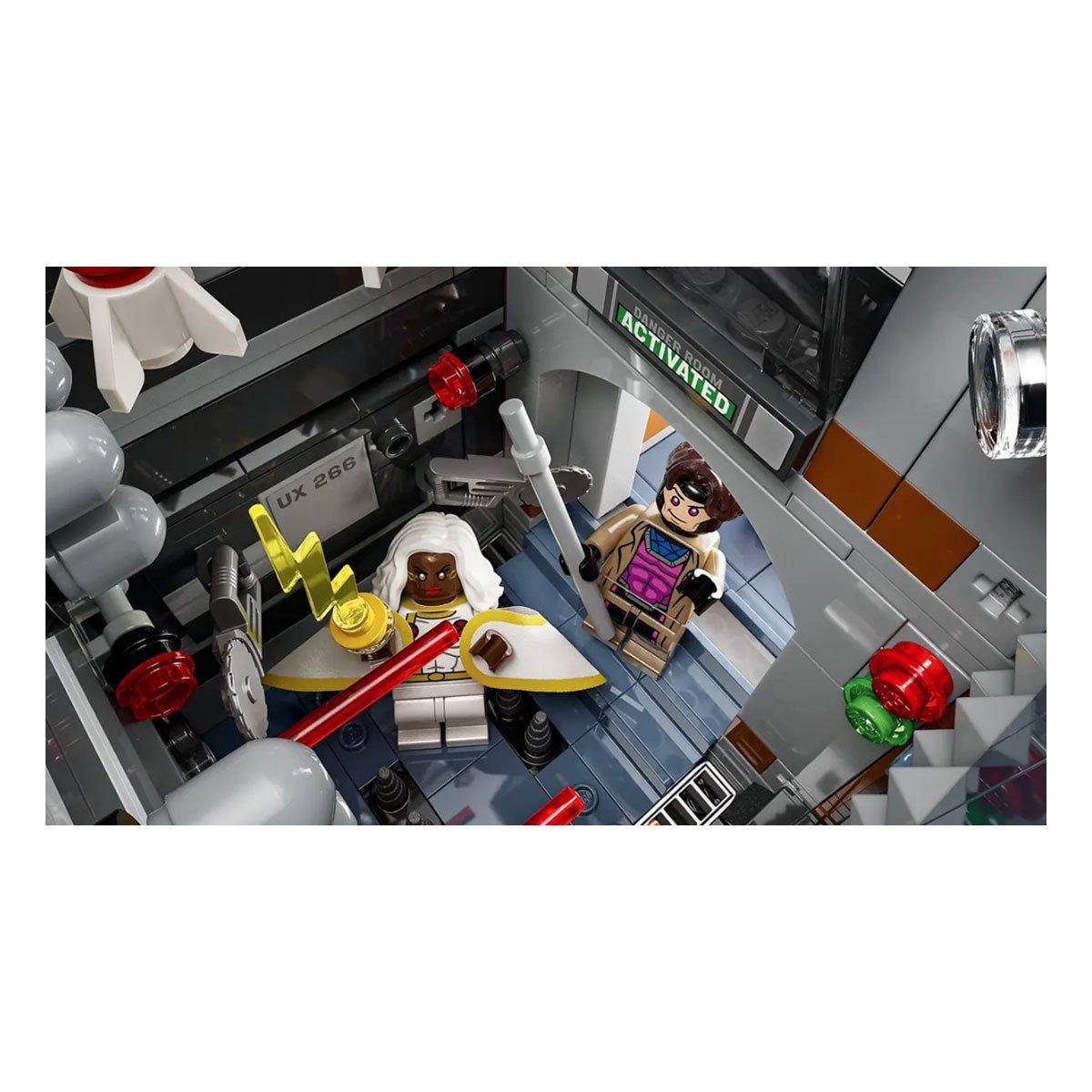 The 2-level 3,093-piece X-Men X-Mansion measures over 16 in. (40 cm) wide and features a buildable Sentinel figure and 10 X-Men minifigures: Professor X, Wolverine, Jean Grey, Cyclops, Storm, Gambit, Rogue, Iceman, Bishop and Magneto. The upper level houses Professor X's laboratory, Wolverine’s bedroom and a medical lab. On the ground level is a lobby, classroom and a library. On the left of the X-Mansion is the Danger Room training facility, which is accessed via a sliding door and can be customized by reconfiguring walls and accessories. Interactive features include a sliding interactive whiteboard and a rooftop that can be destroyed by activating a switch.