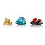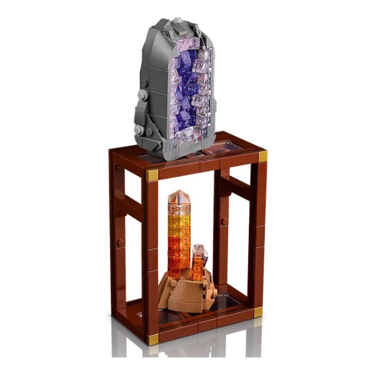 Use clever building techniques and transparent LEGO bricks to create models of golden pyrite, purple amethyst, blue fluorite, watermelon tourmaline, reddish-pink rhodochrosite and tangerine quartz. Assemble the 3 freestanding shelving units and attach your creations to the shelves. Arrange the units as you wish and swap the minerals to different shelves to change up your display.